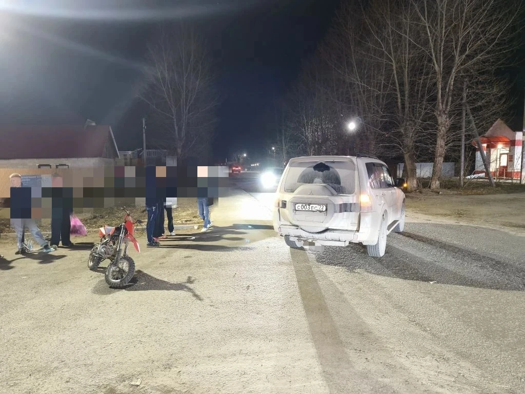 Там столкнулись питбайк и «Мицубиси Паджеро». Предварительно, "Мицубиси Паджеро" выезжал с прилегающей территории: 43-летний водитель не уступил дорогу питбайку, который ехал по главной дороге.