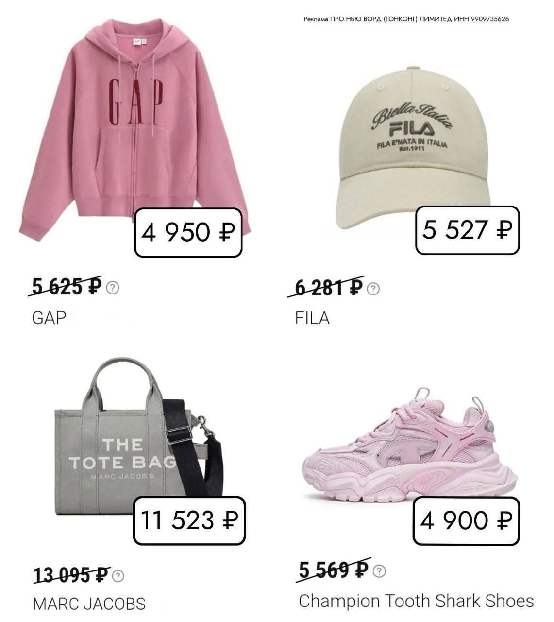 Реклама ПРО НЬЮ ВОРД (ГОНКОНГ) ЛИМИТЕД ИНН 9909735626