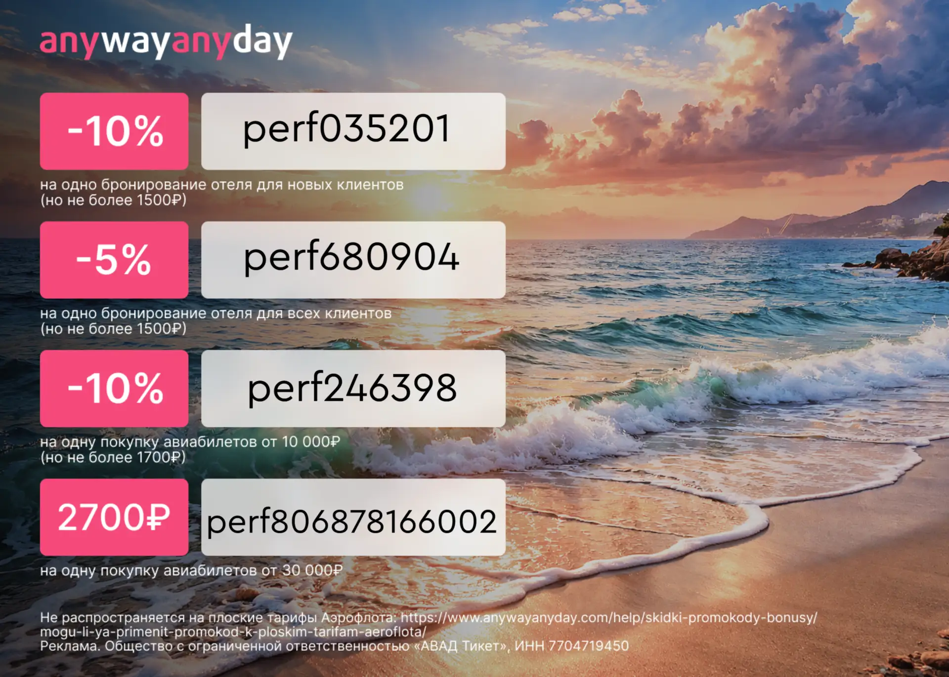 ⚡️ perf806878166002 — скидка 2 700 ₽ на одну покупку авиабилетов от 30 000 ₽.