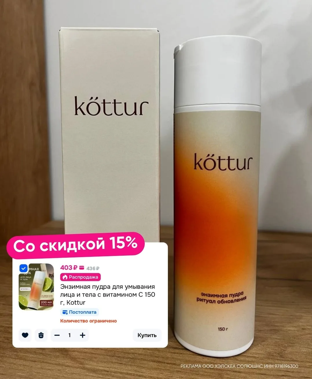Реклама. Рекламодатель ООО «Алькор и Ко», ИНН 7729265128