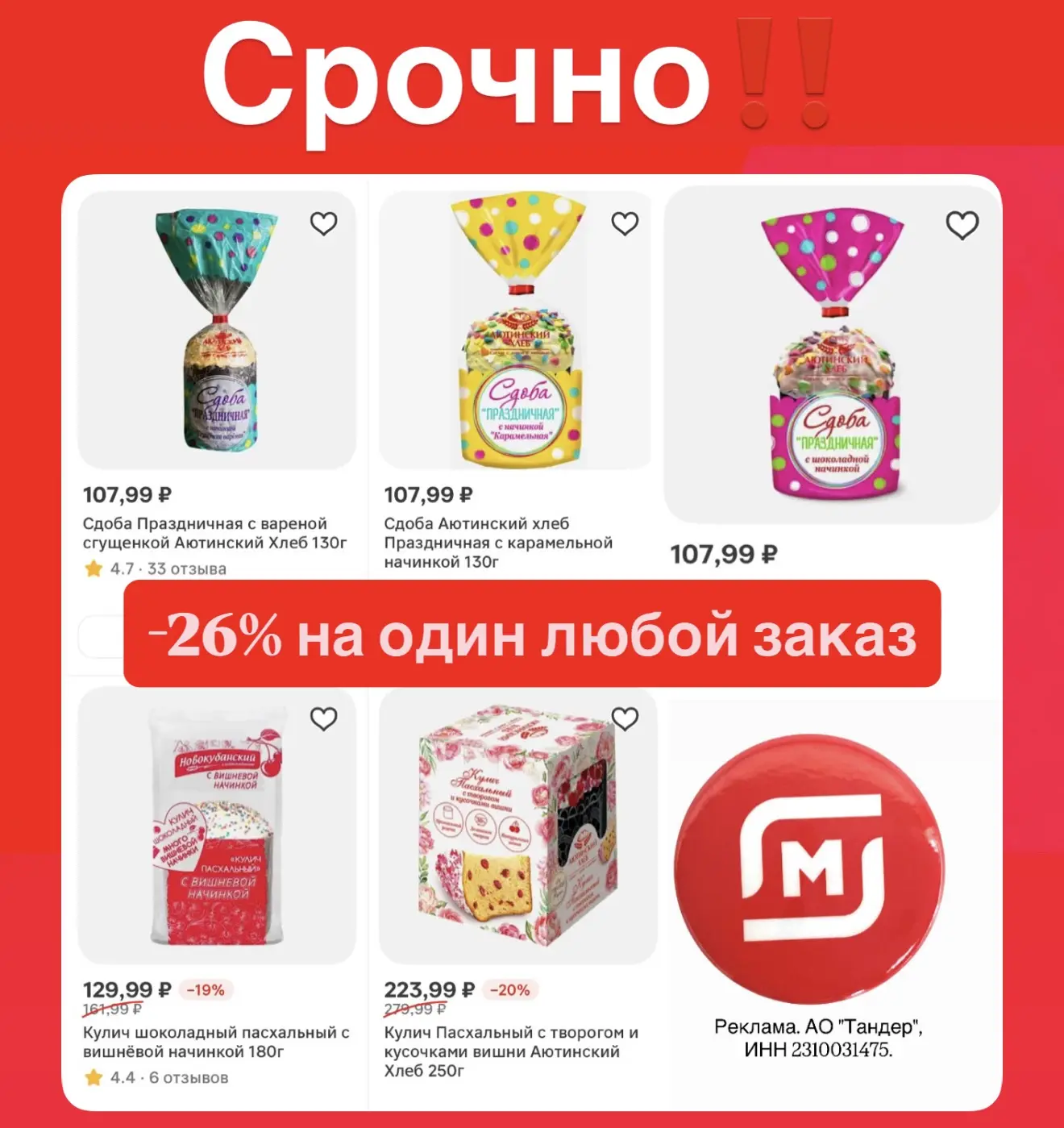 Реклама. АО "Тандер", ИНН 2310031475.