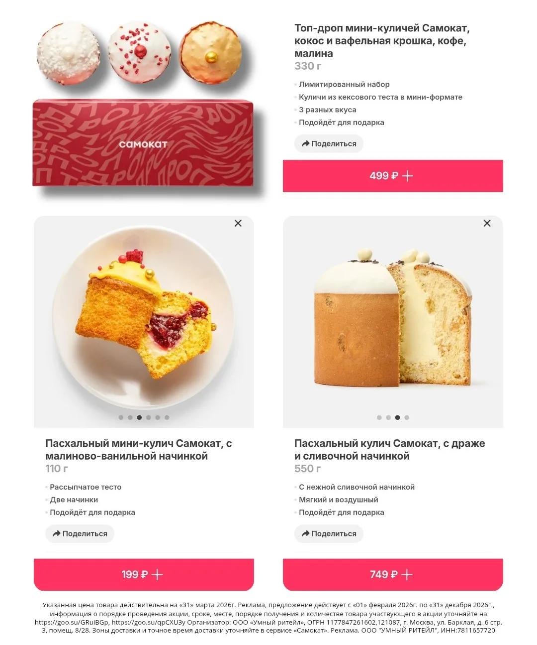 Те самые легендарные куличи из Самоката уже в наличии! 🐣🛴