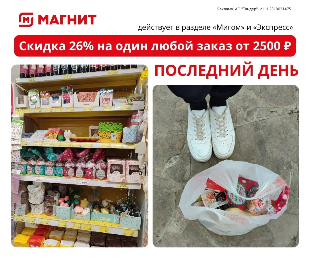Заказывайте в приложении Магнит по ссылке: Реклама. АО "Тандер", ИНН 2310031475. erid: 2Ranym3PA1p ✏️