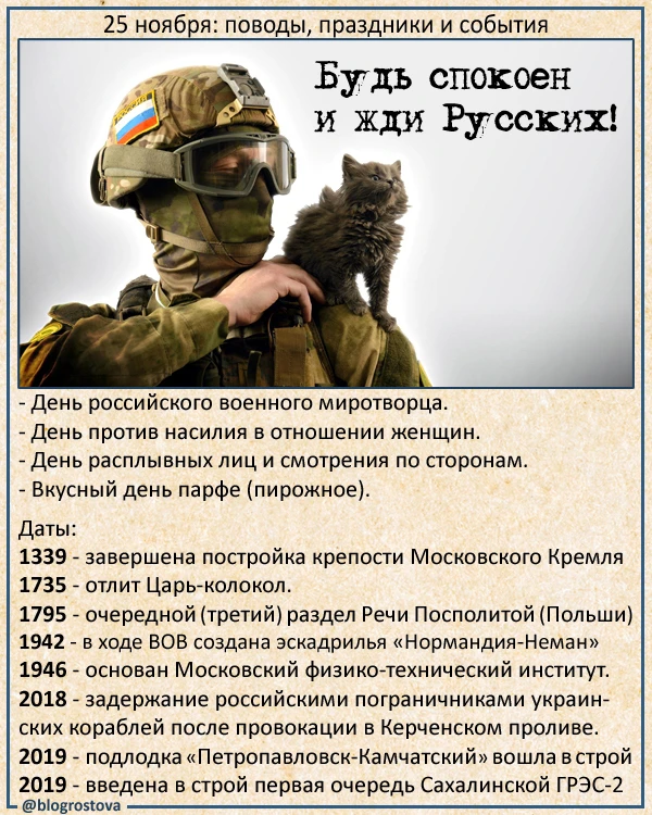 ✅В 1973 г. Россия впервые приняла участие в миротворческой операции на Ближнем Востоке в ходе арабо-израильского конфликта (надо повторять). Теперь этот день считается днём Российского миротворца.