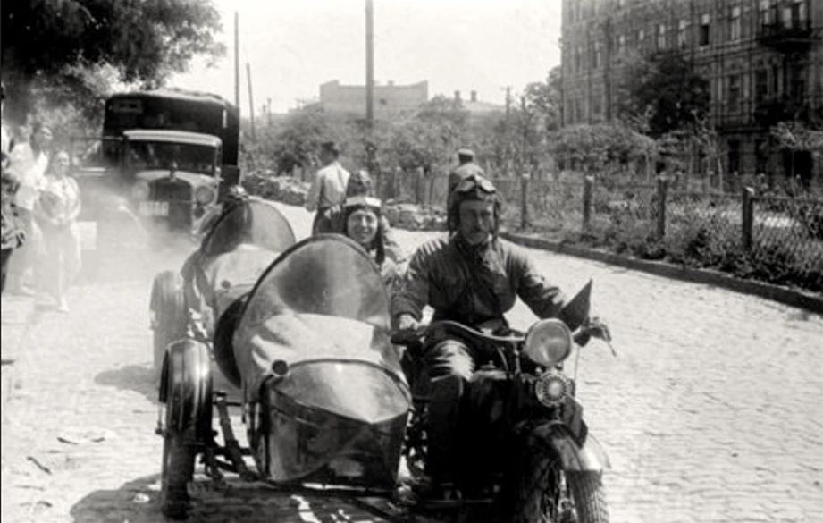✅1935 - каких-то 2 десятка лет назад по Пушкинской прогуливались дамы с фазанами на шляпках, и вот тут уже стартует скоростной мотопробег командиров РККА Кавказского военного округа на мотоцикле марки "Харлей-Давидсон"