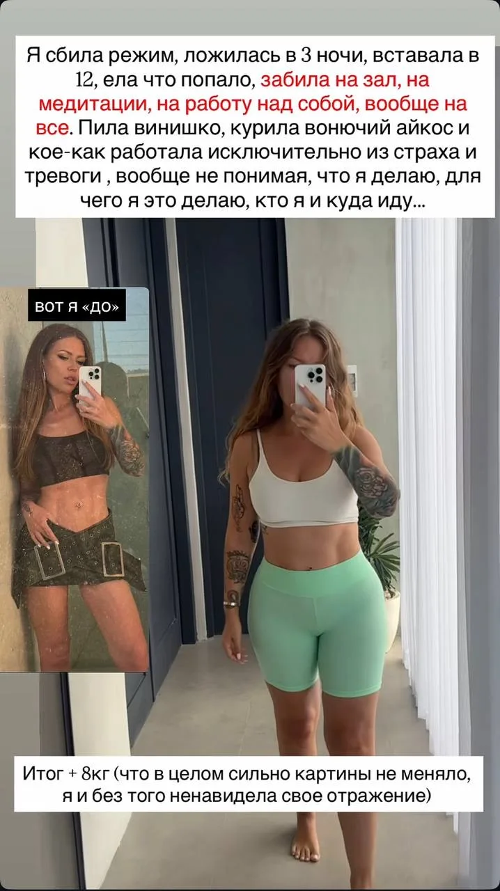 Артистка рассказала, что из-за жуткой операции сбила режим, перестала ходить в зал и следить за питанием, начала каждый день пить вино и курить.