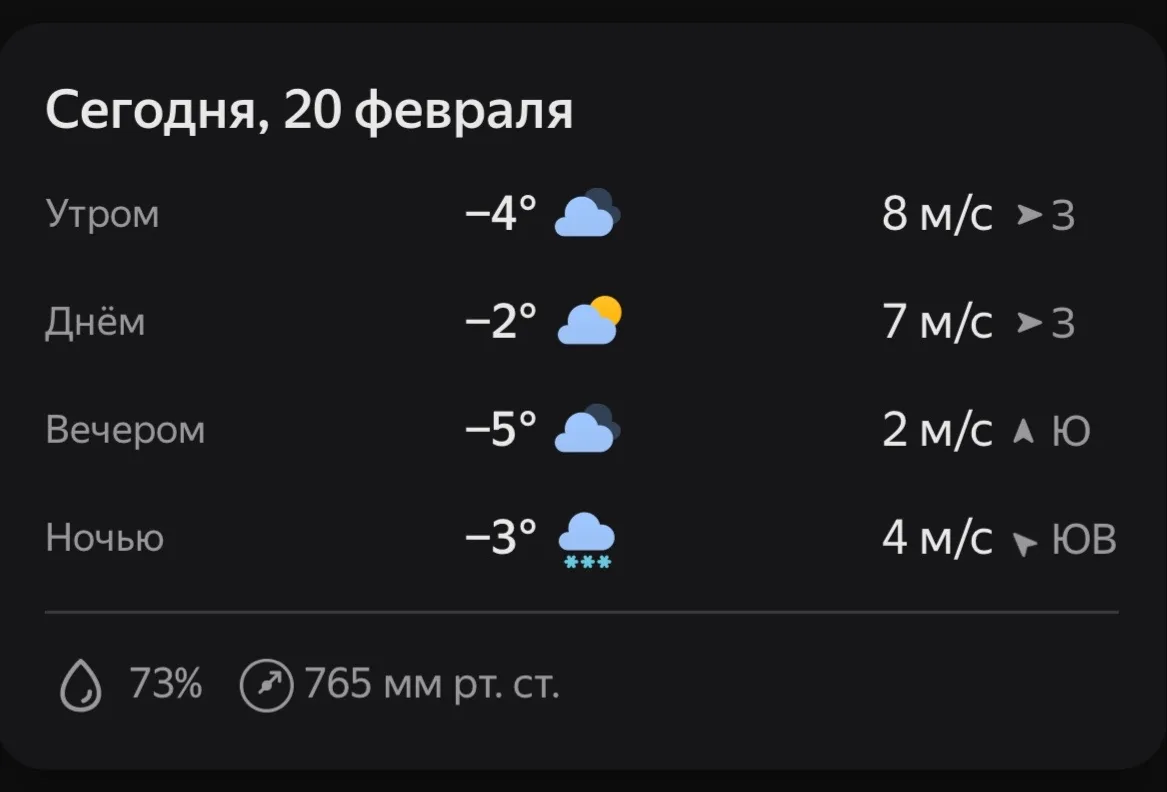 Ожидается снег, туман и сильная гололедица на дорогах. Ветер западный, порывы могут достигать 15–20 м/с.