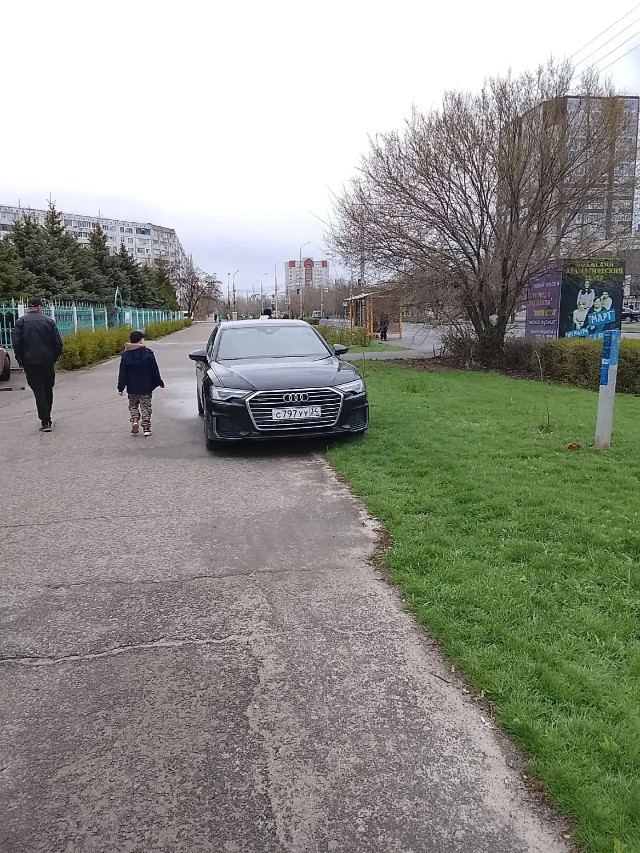 Шли с детьми к церкви Храма Серафима Саровского. Возмутил парковщик Ауди. На зелёной зоне, перед церковью.