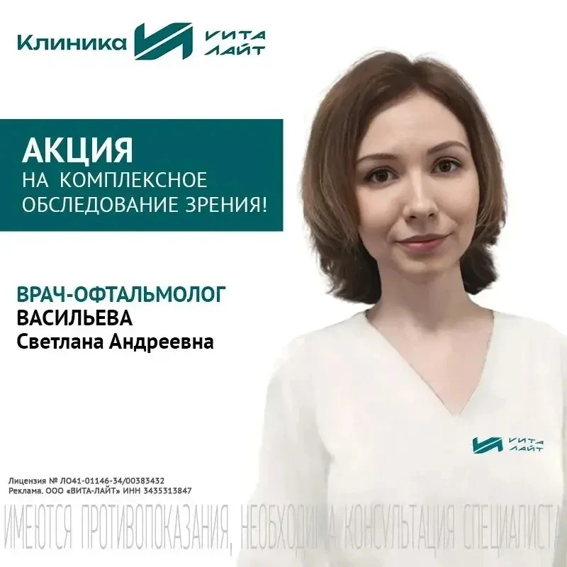 До конца февраля запишитесь на комплексное обследование к опытному офтальмологу Васильевой Светлане Андреевне.