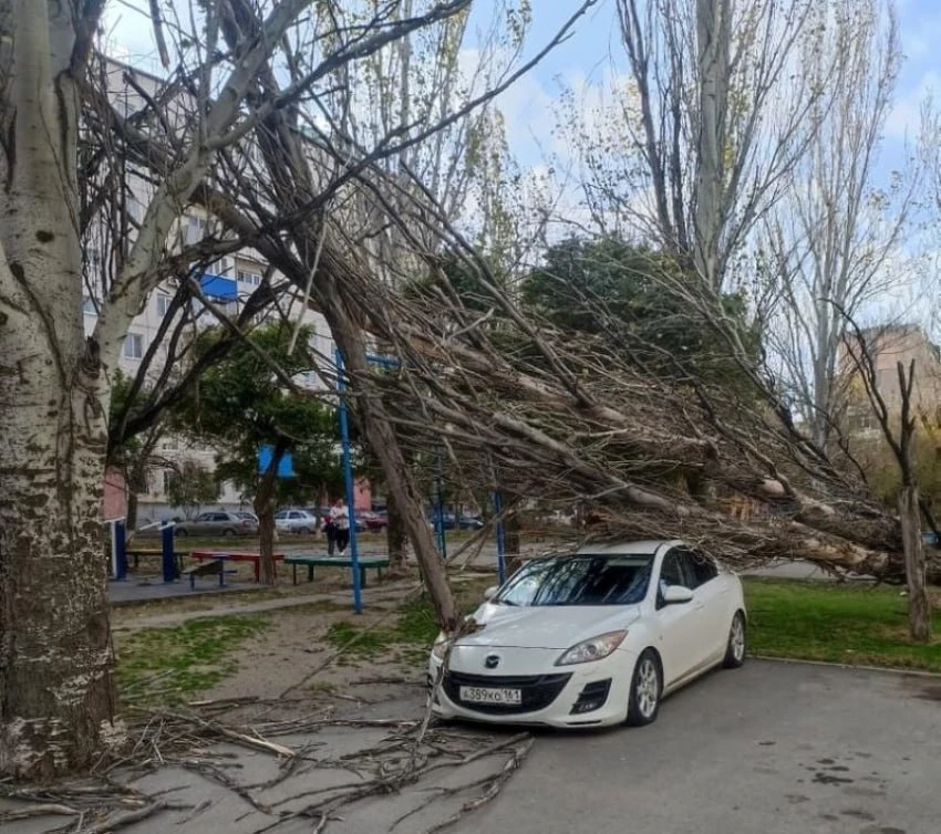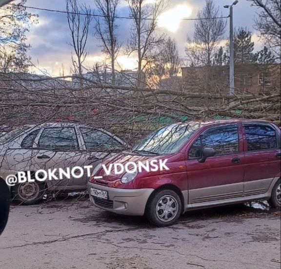 Ураганный ветер обрушился на Волгодонск с самого утра, что привело к первым повреждениям, сообщили местные жители.