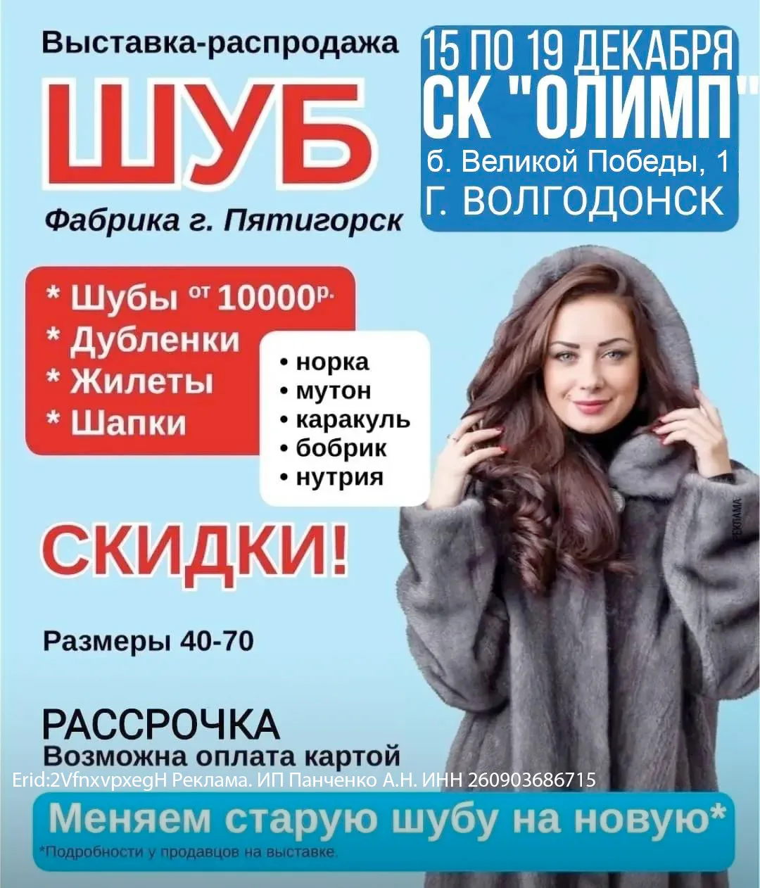 Фабрика из Пятигорска представляет грандиозную выставку-распродажу шуб в Волгодонске!