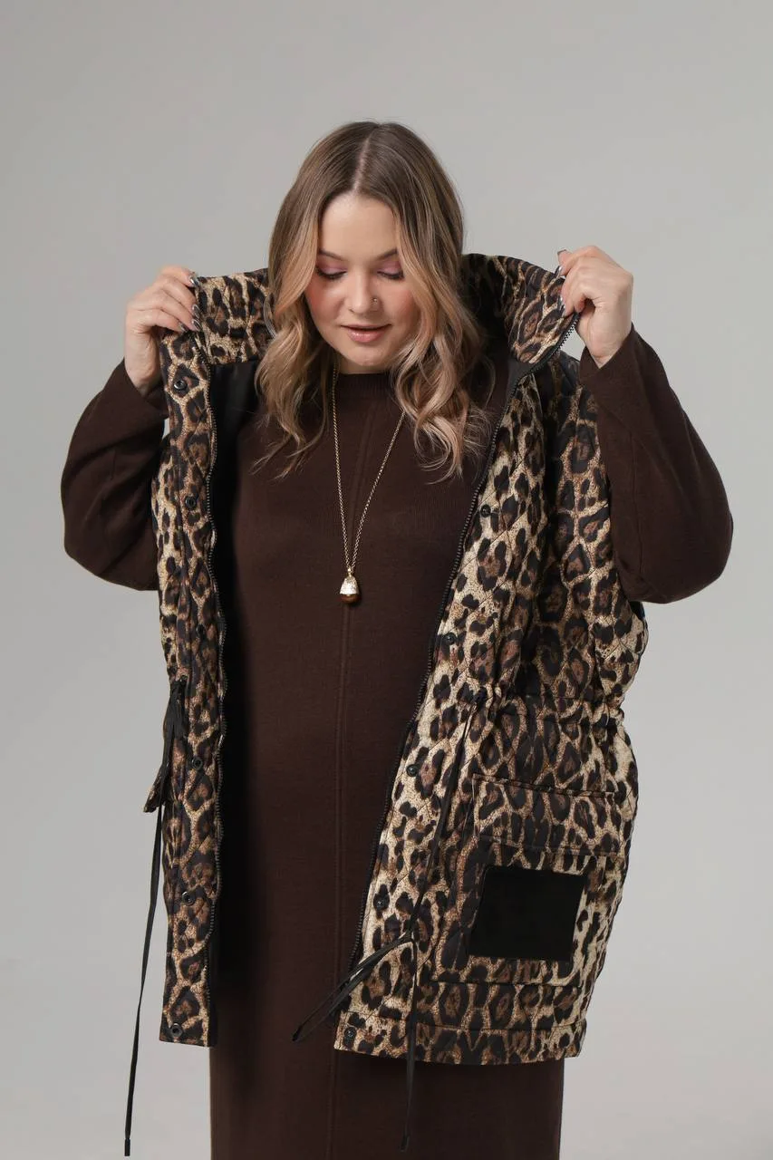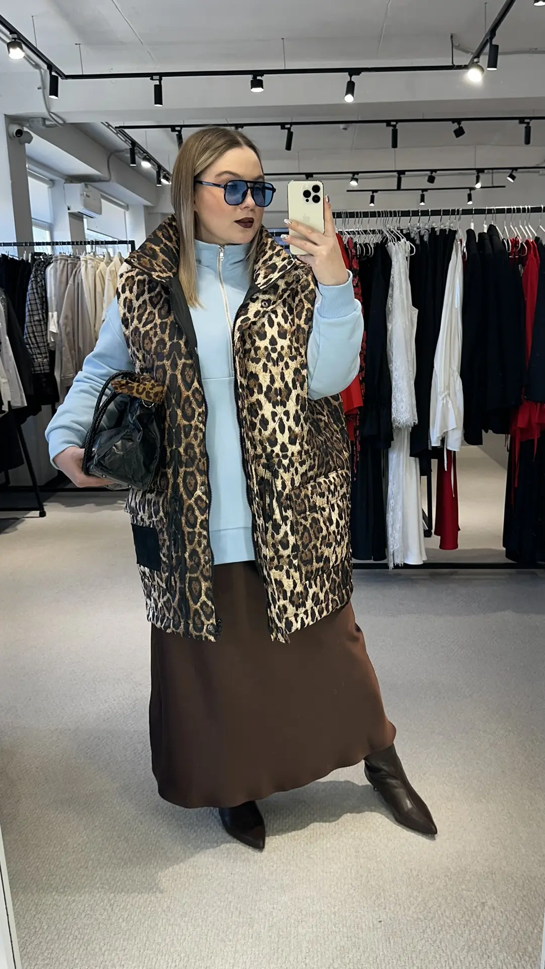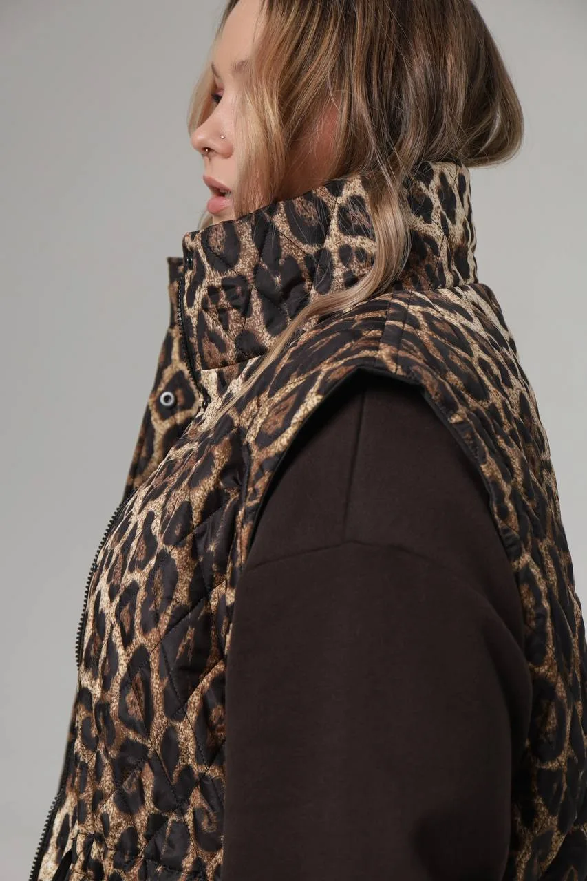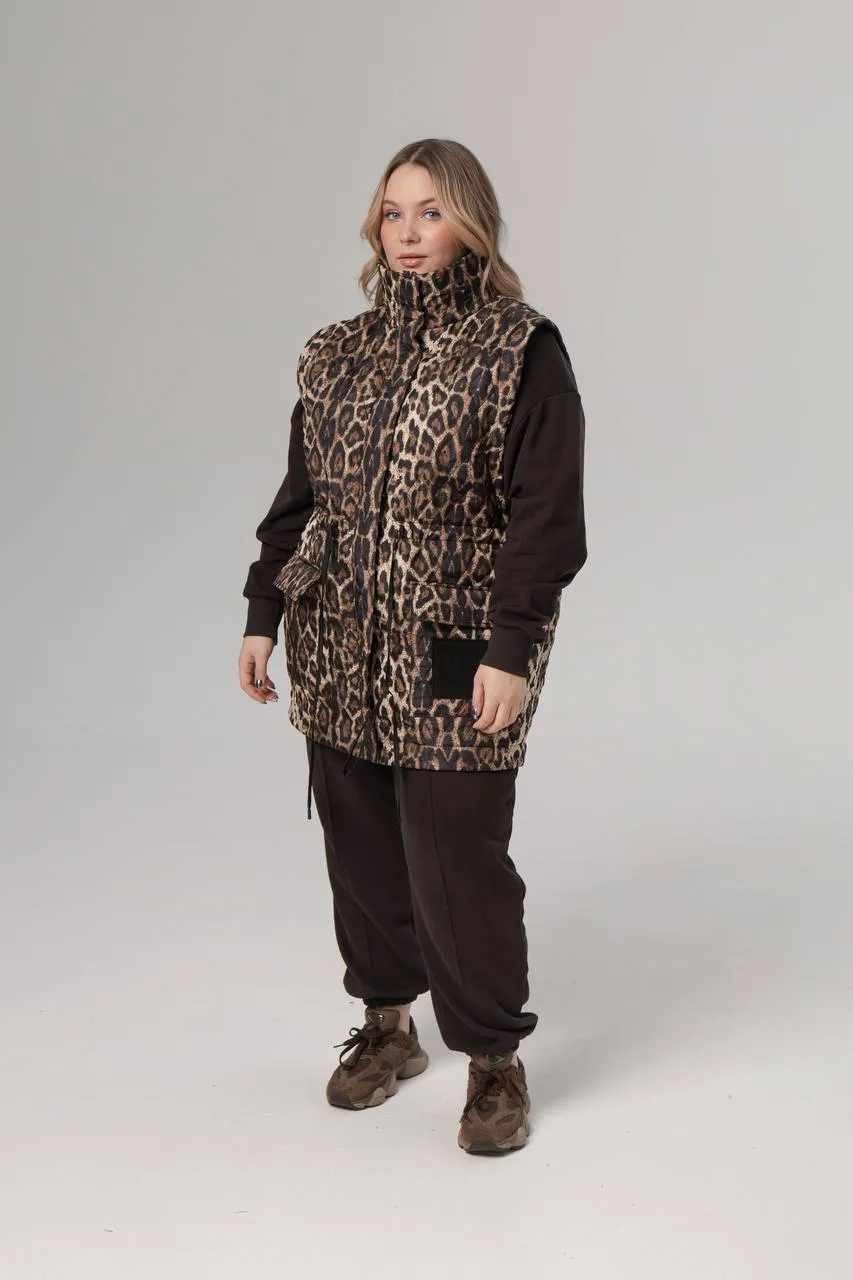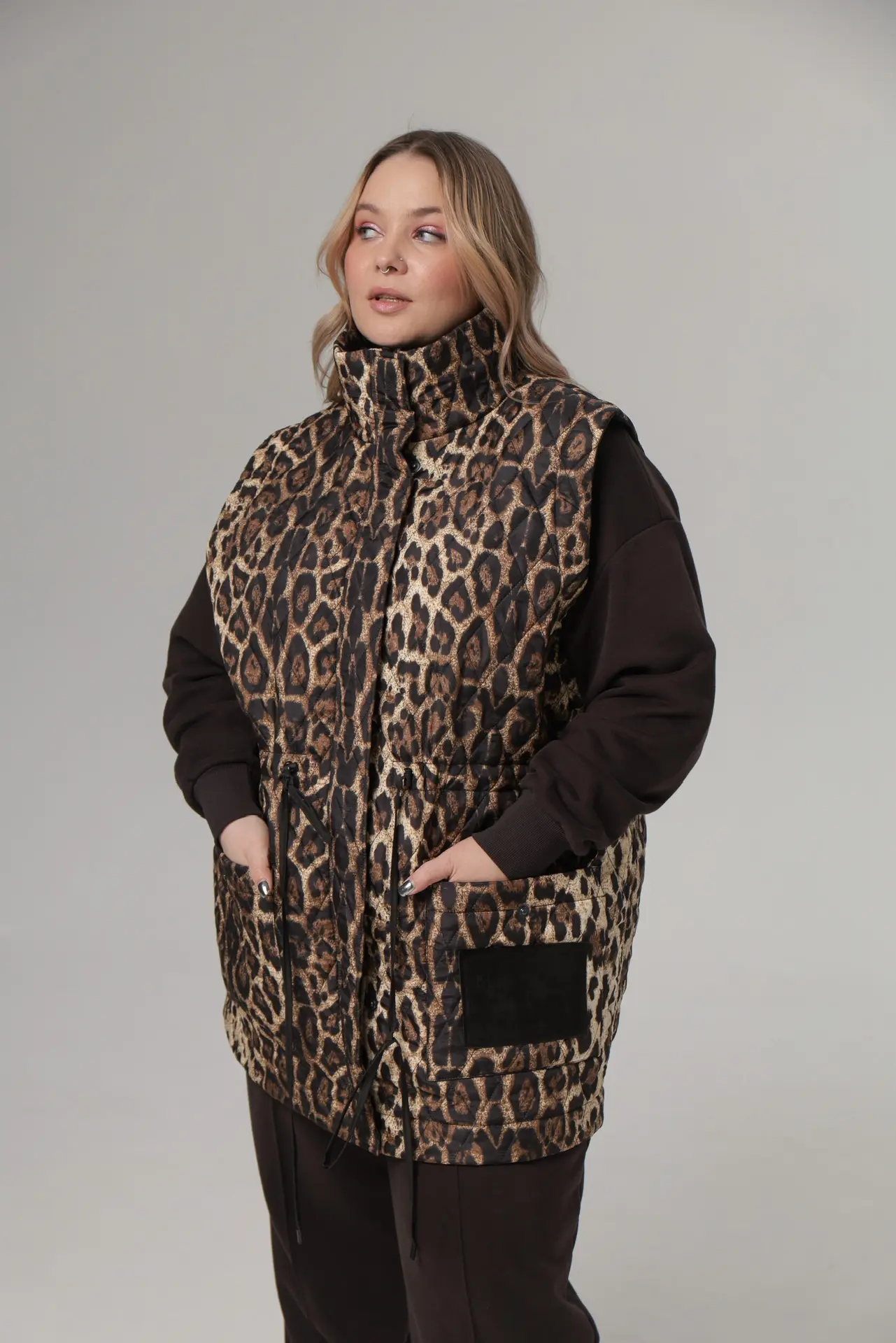 Утепленный жилет ALTAI в принте лео шоколад — идеальный выбор для межсезонья 🤎