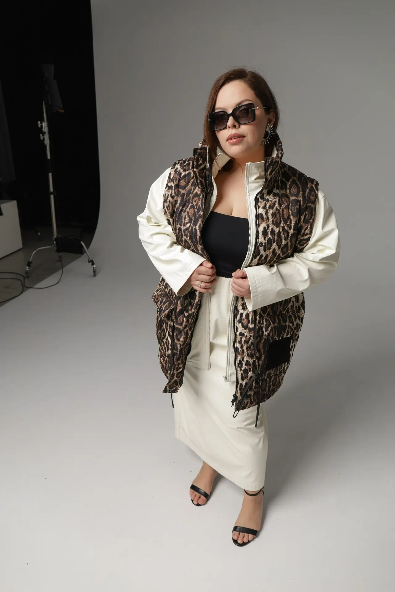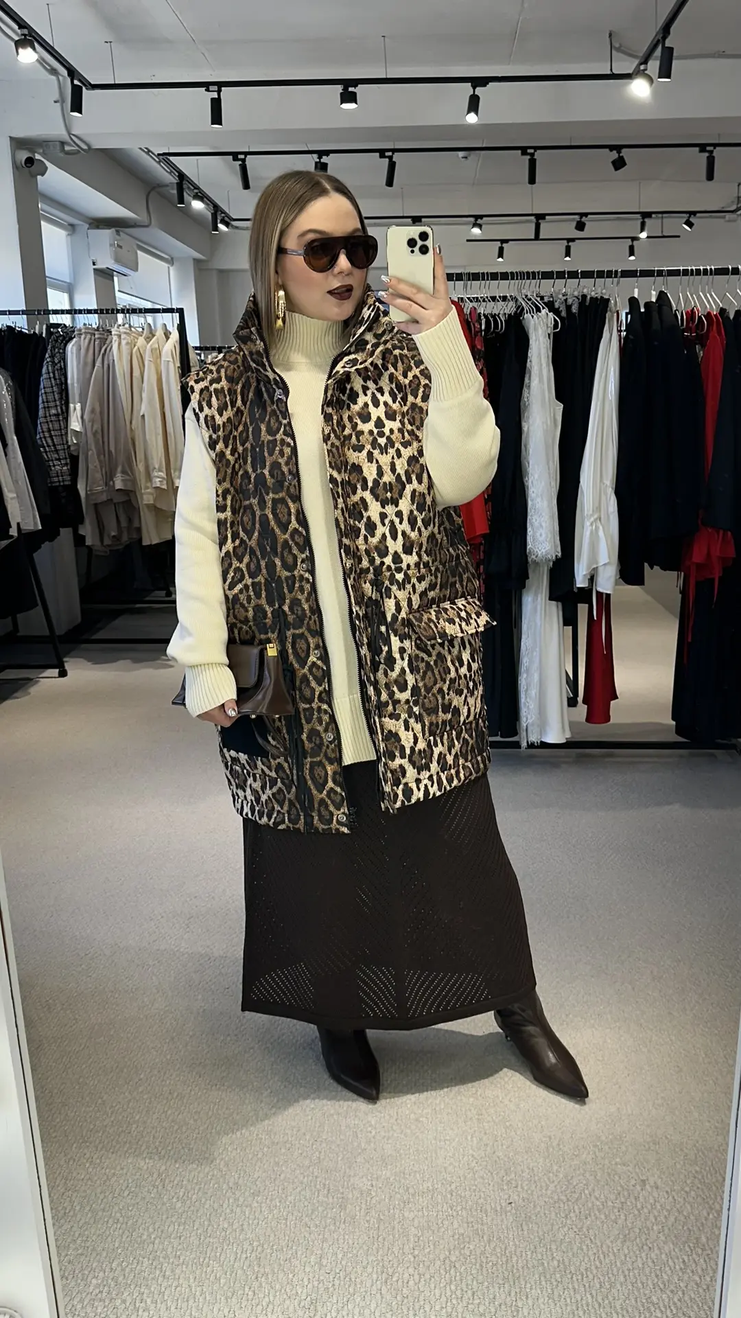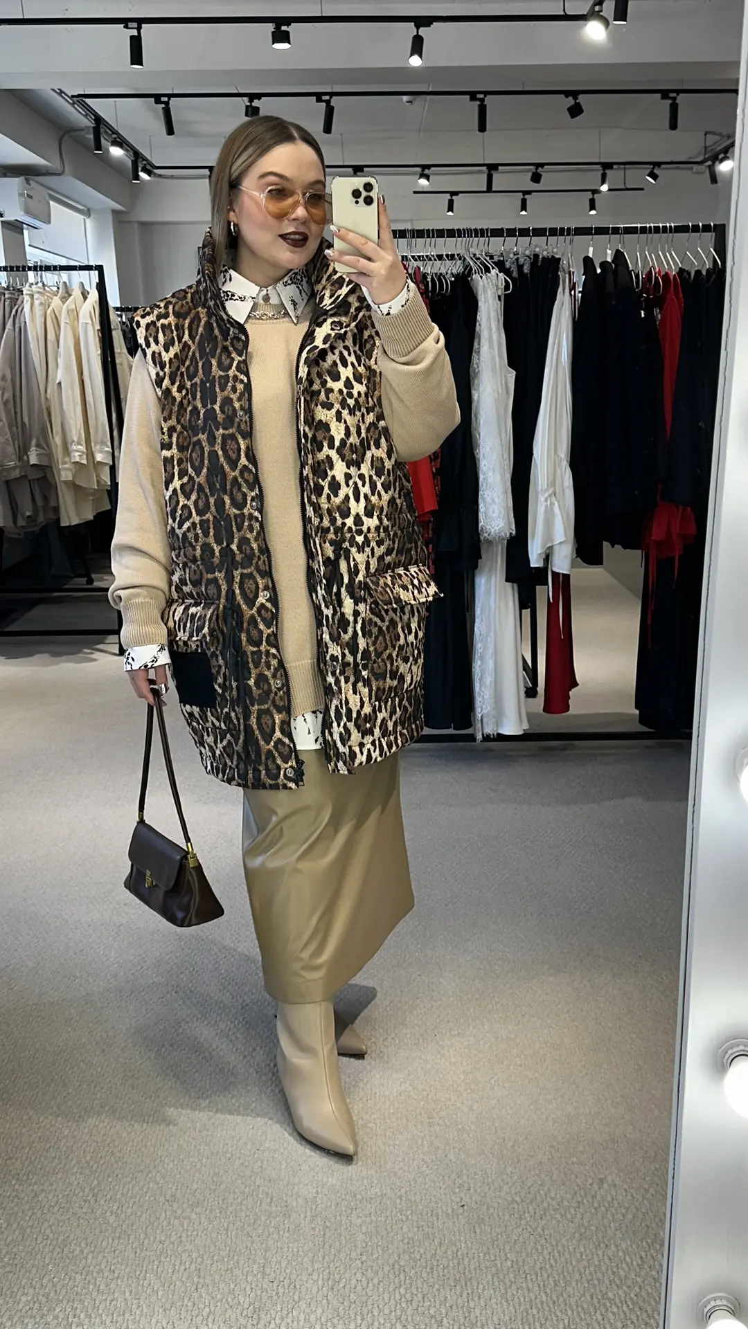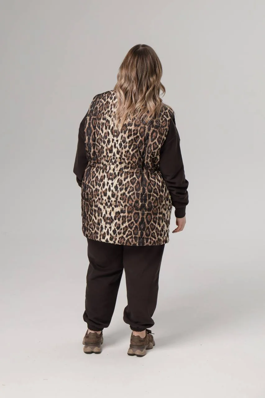 Утепленный жилет ALTAI в принте лео шоколад — идеальный выбор для межсезонья 🤎