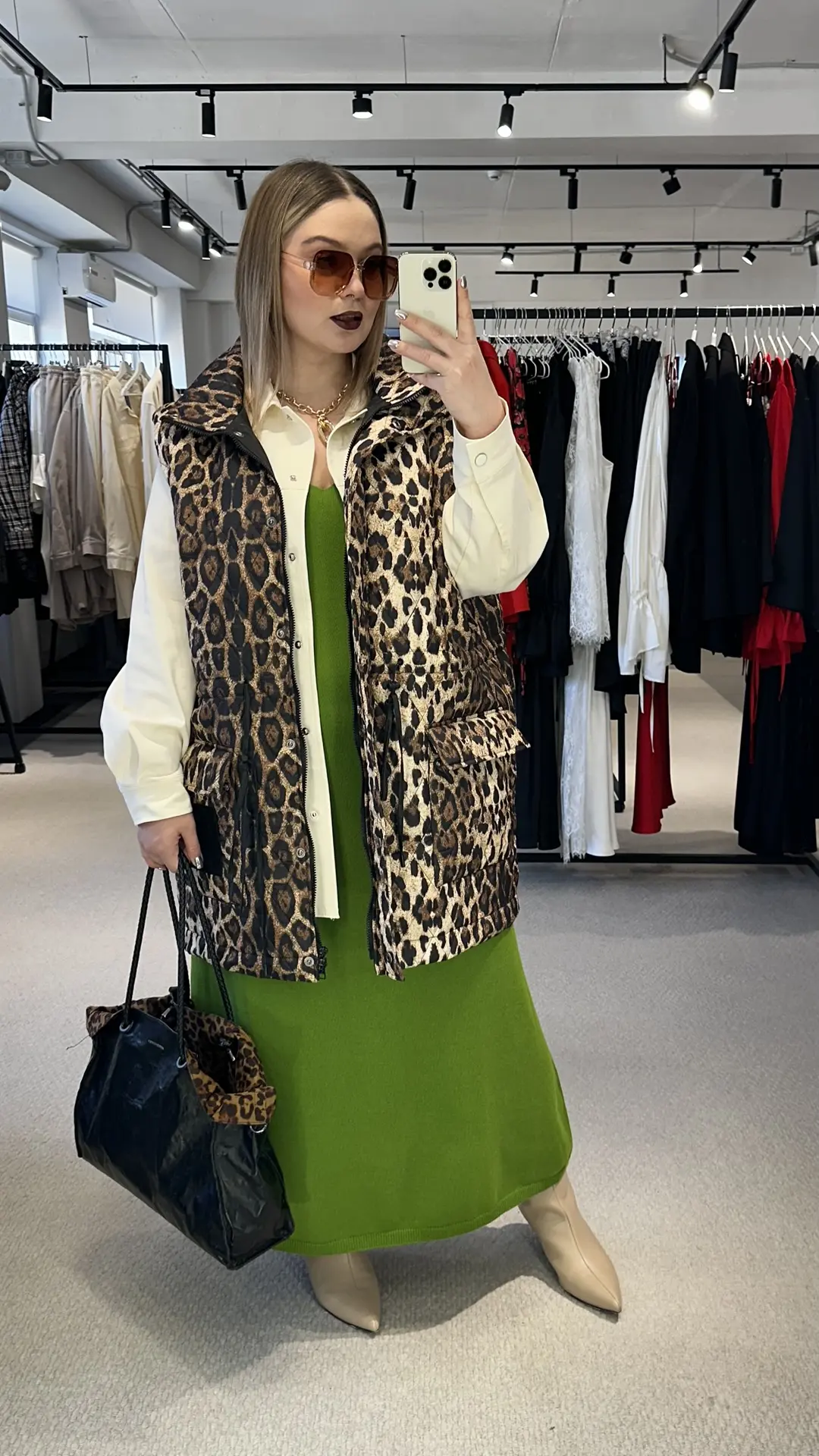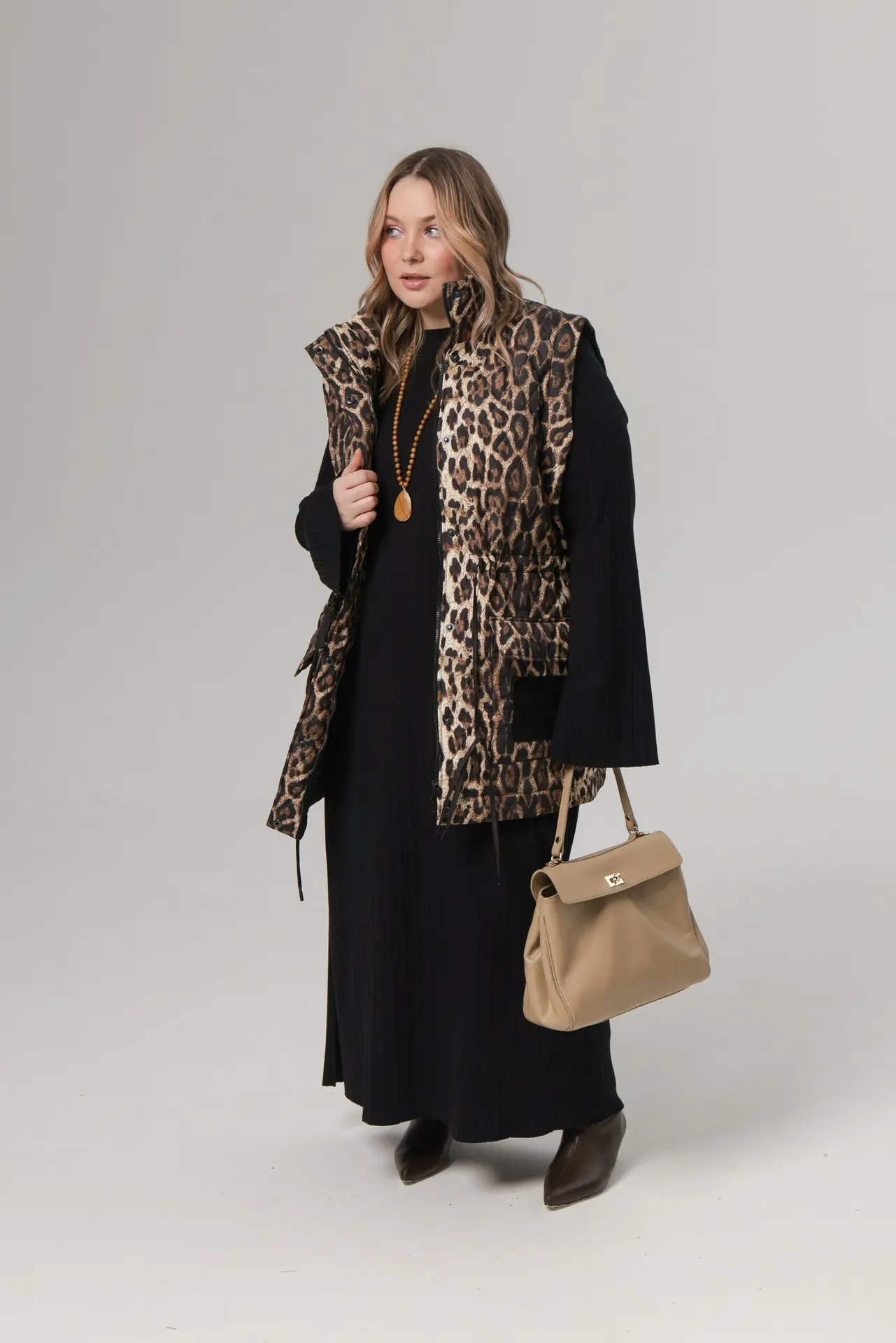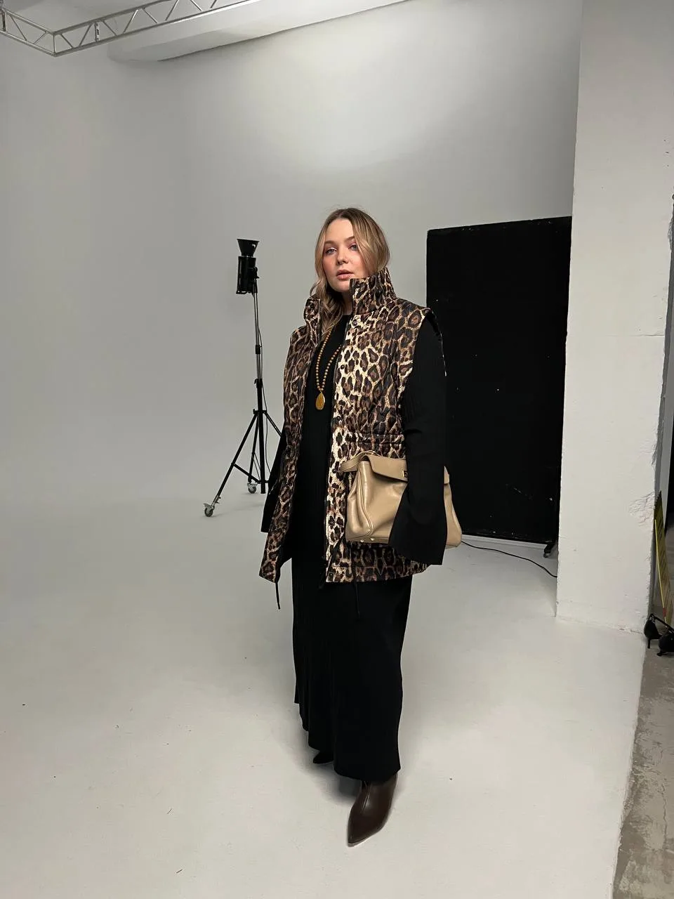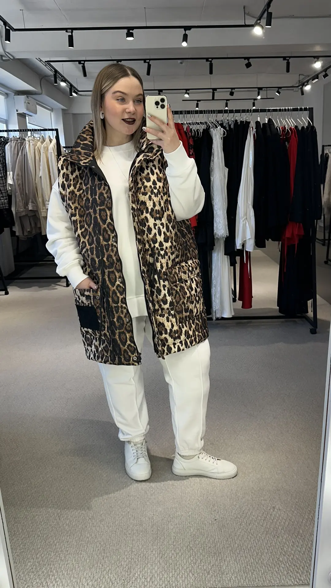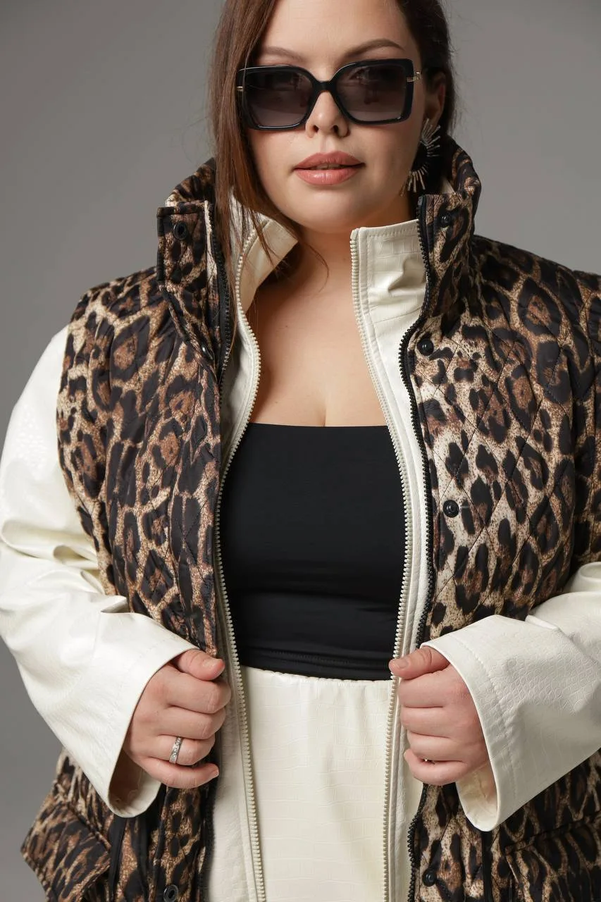Утепленный жилет ALTAI в принте лео шоколад — идеальный выбор для межсезонья 🤎
