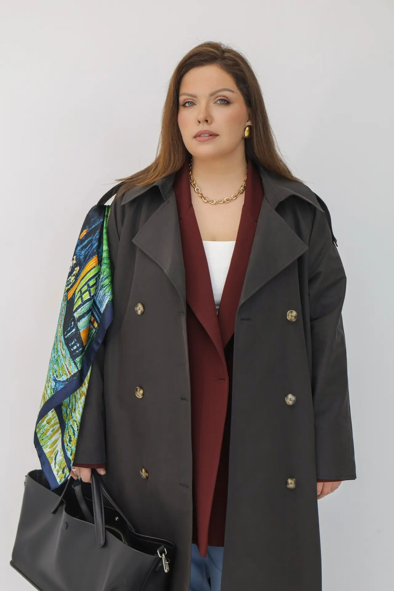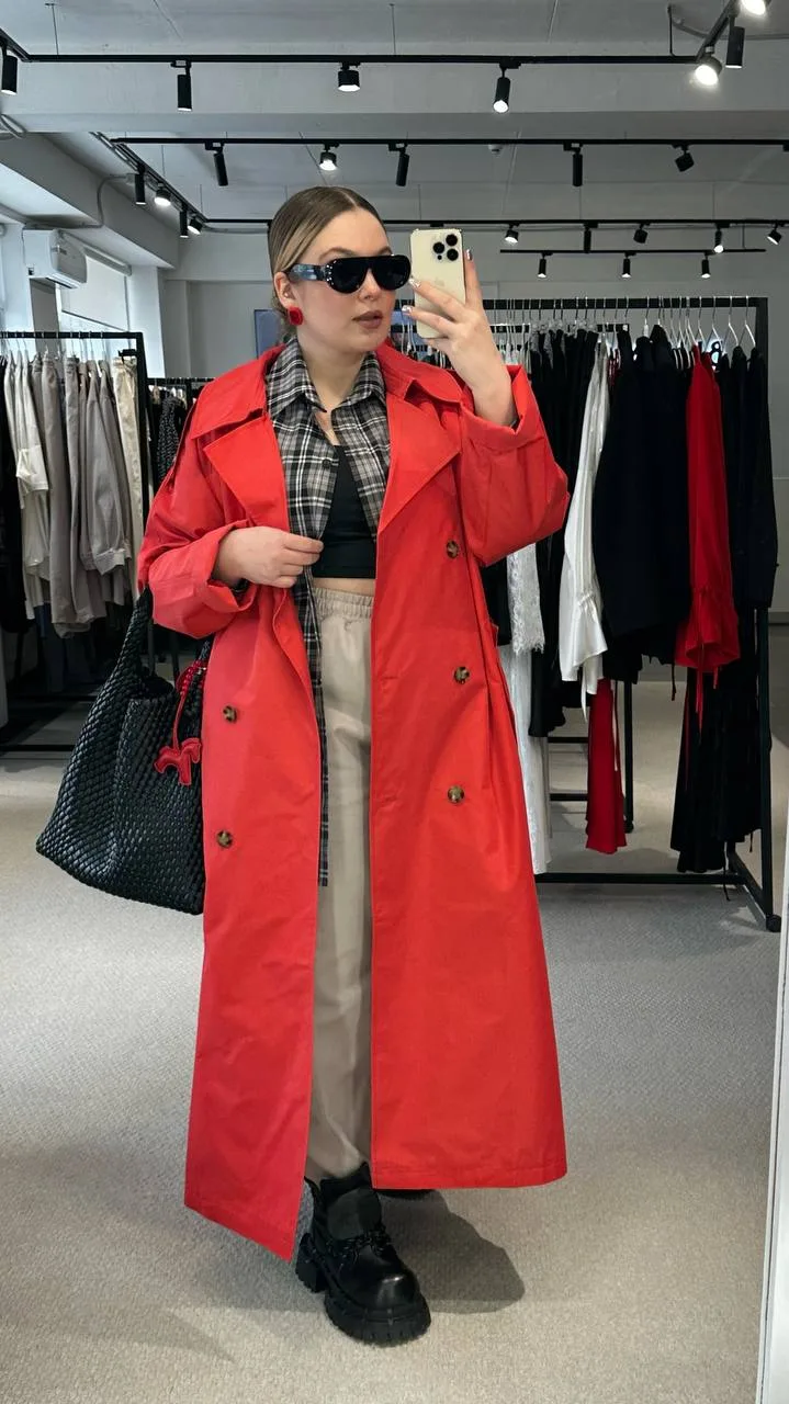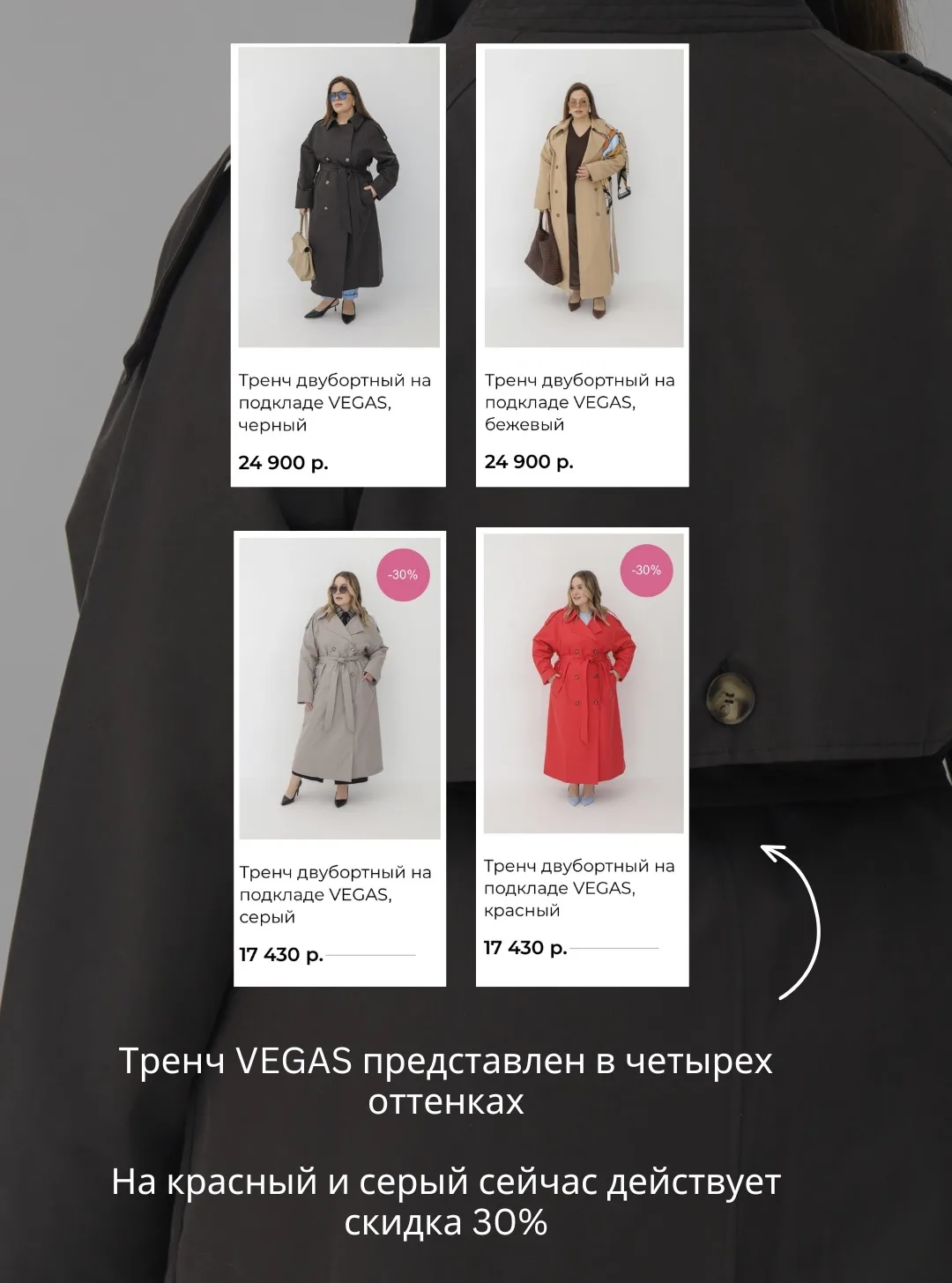 Тренч VEGAS представлен в четырех оттенках (бежевый, красный, серый, чёрный)