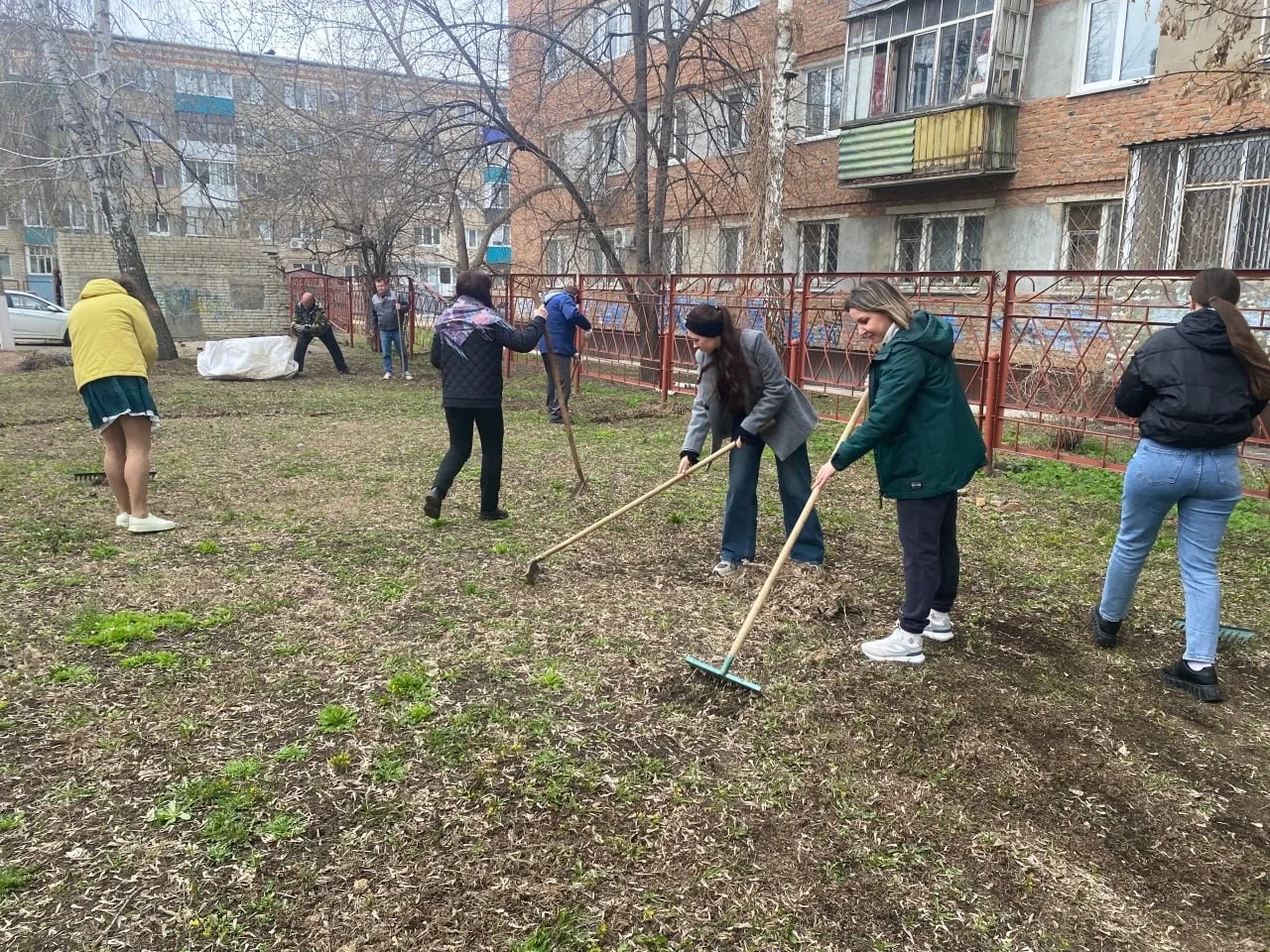 Участники весеннего субботника очистили территории от опавшей листвы и сухих веток, а также подготовили клумбы для высадки растений.