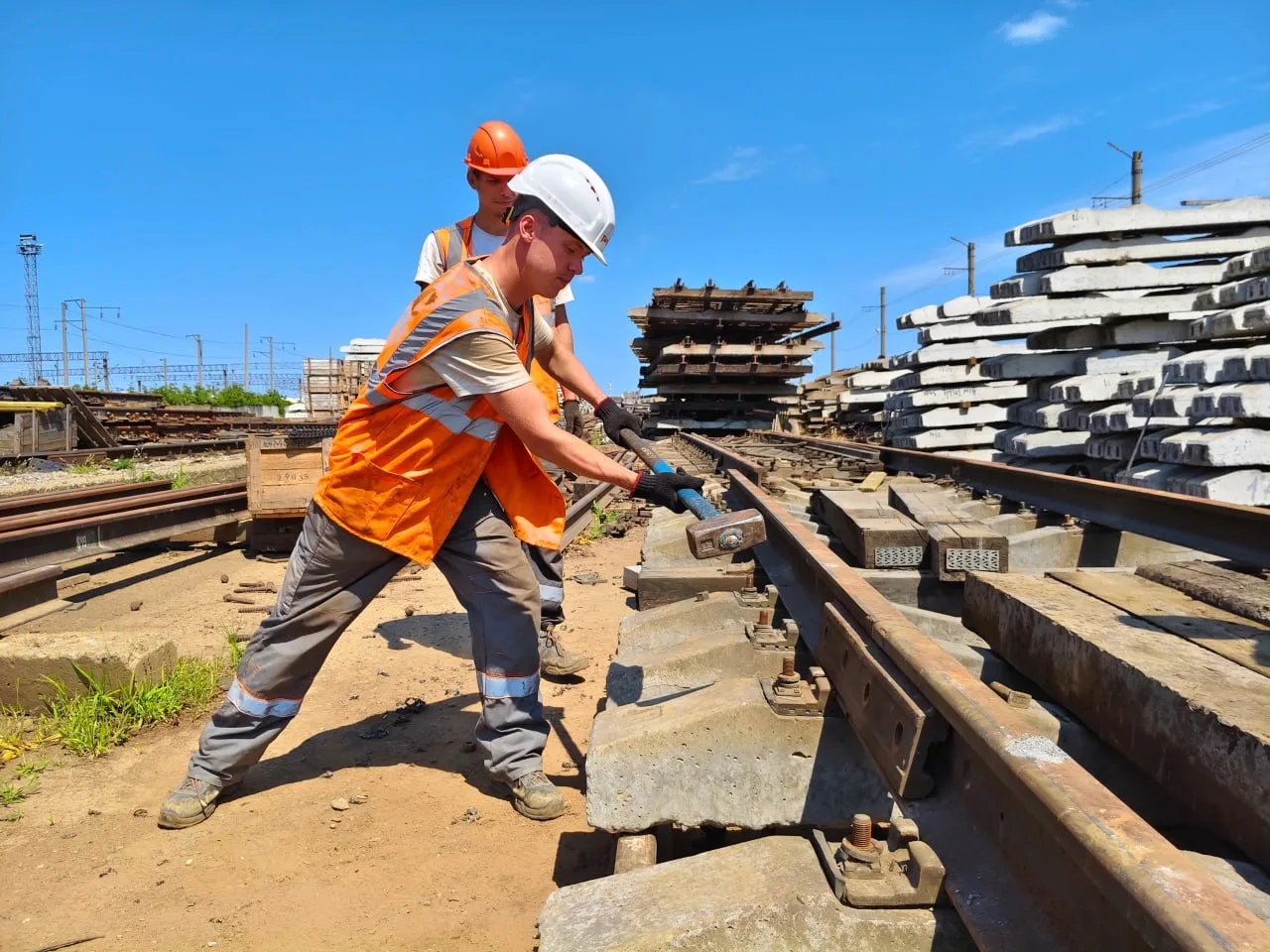 🔵 ребята из ССО «Малахит» и ССО «Заря» занимаются монтажными работами на железнодорожных путях