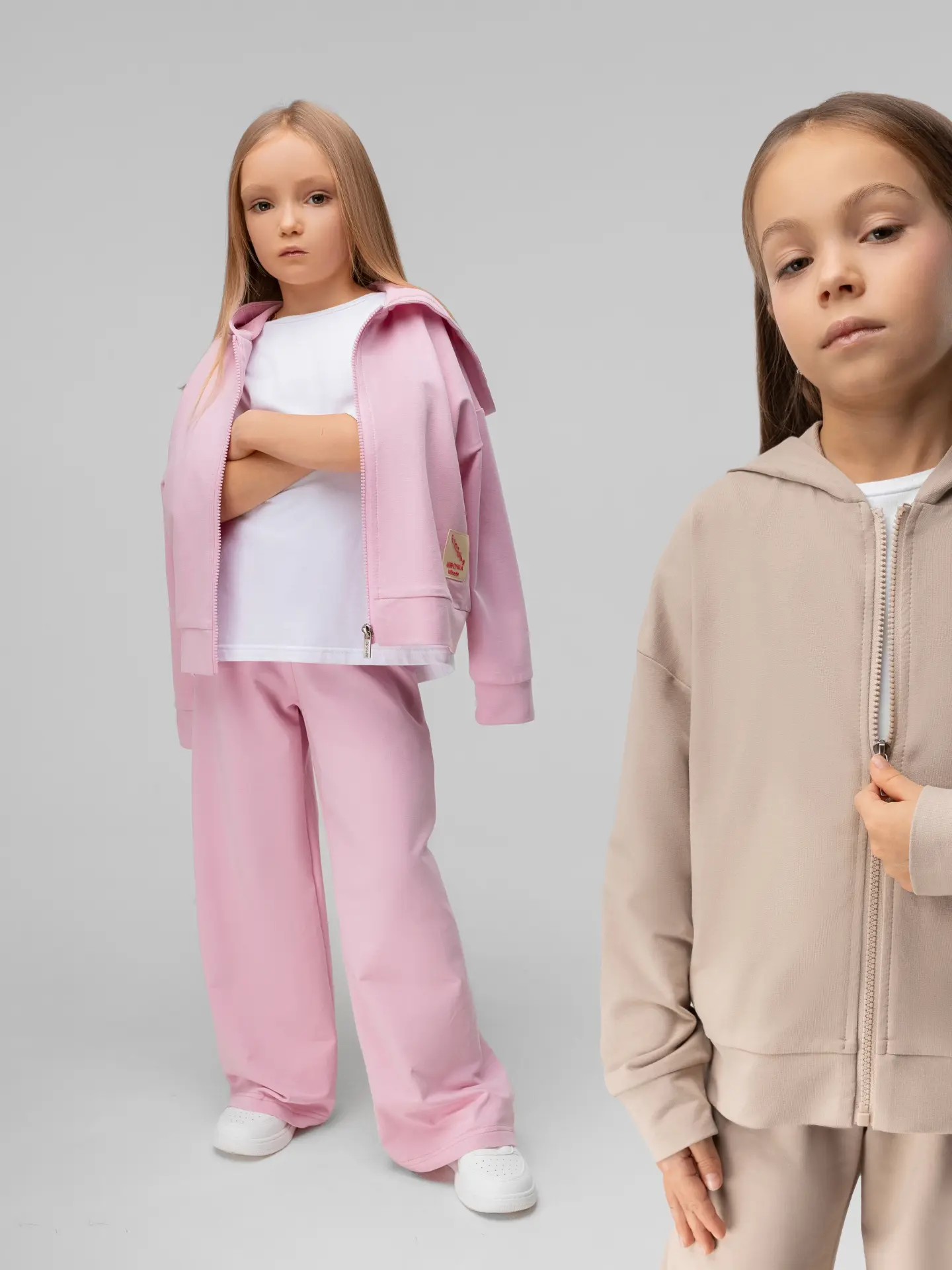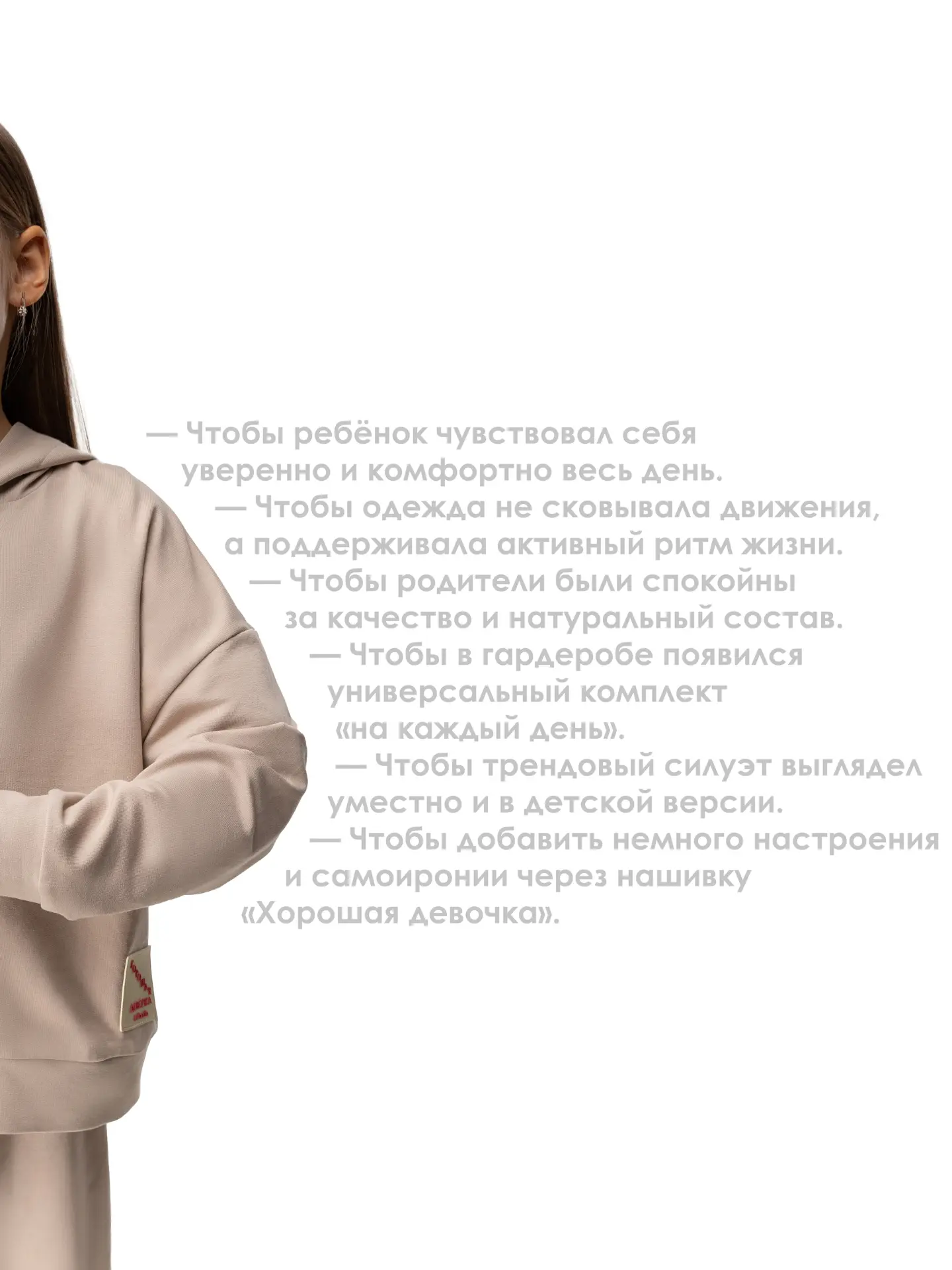 Укороченная, прямая толстовка на молнии с капюшоном, плечо спущенное. Нашивка "Хорошая девочка".