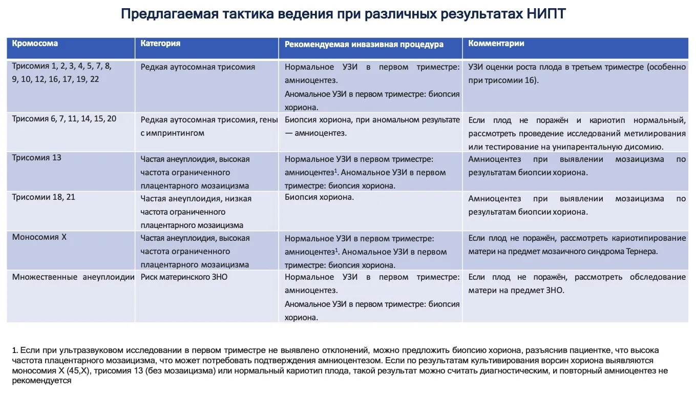 Эти вопросы хорошо обсуждать с генетиком, чтобы выстраивать оптимальный диагностический путь для каждой беременной, столкнувшейся с аномальными результатами скрининга