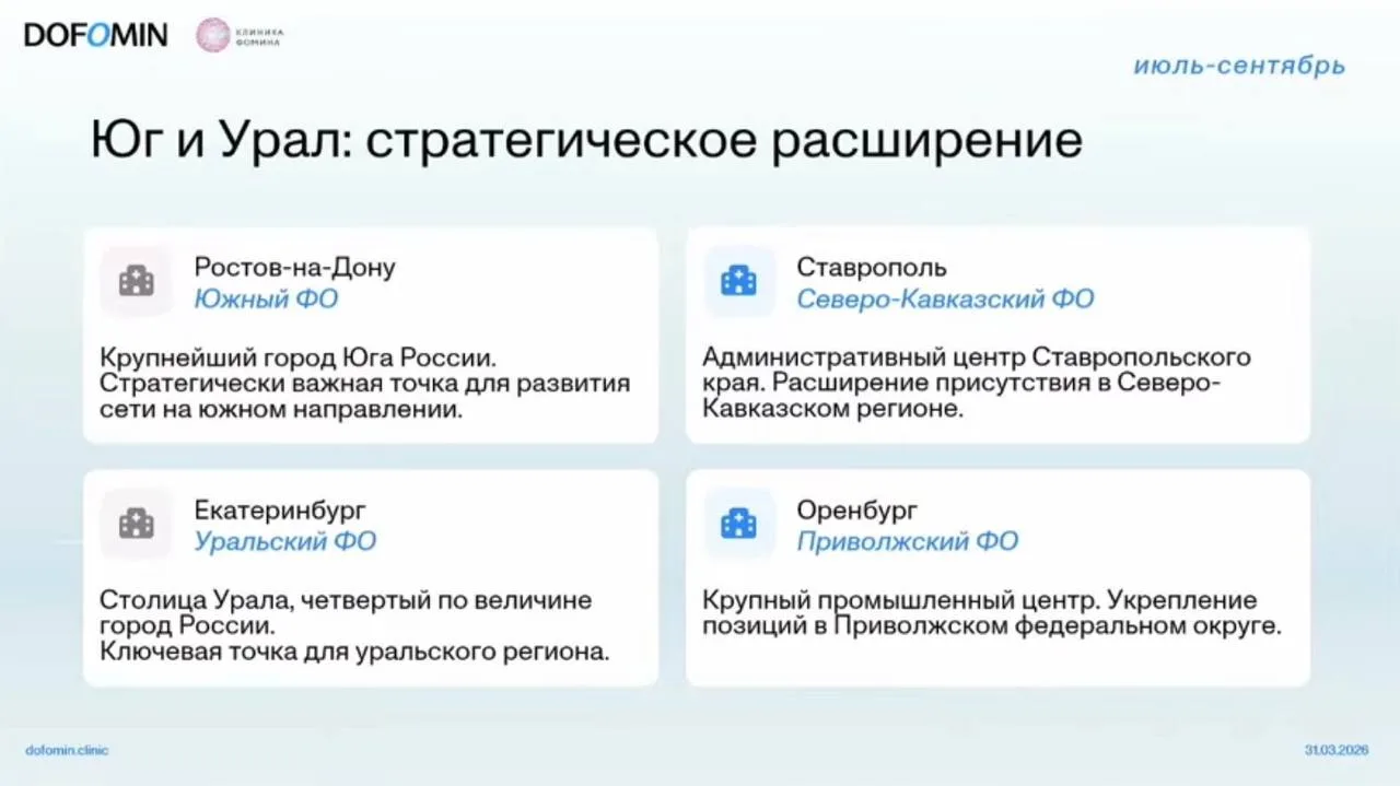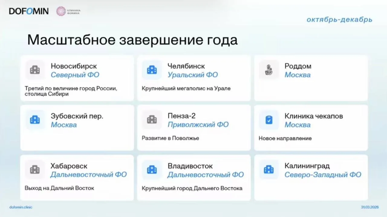 Юбилейный регион. Это будет 20-й регион и 30-я клиника сети «Клиника Фомина»