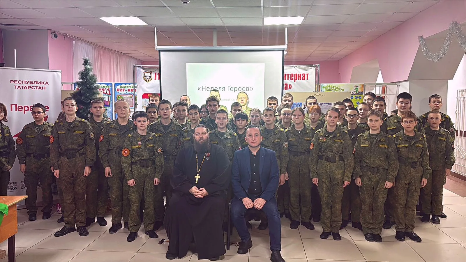 В рамках Недели Героев Отечества в стенах ГБОУ «Болгарская кадетская школа-интернат им. Карпова П.А.» состоялась особая встреча — диалог двух конфессий. Гостями кадетов стали протоиерей отец Серафим и фархат Хазрат.