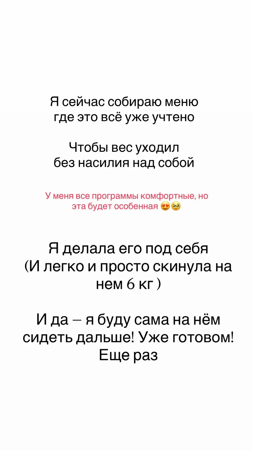 а питание, на котором жила я сама всё это время.