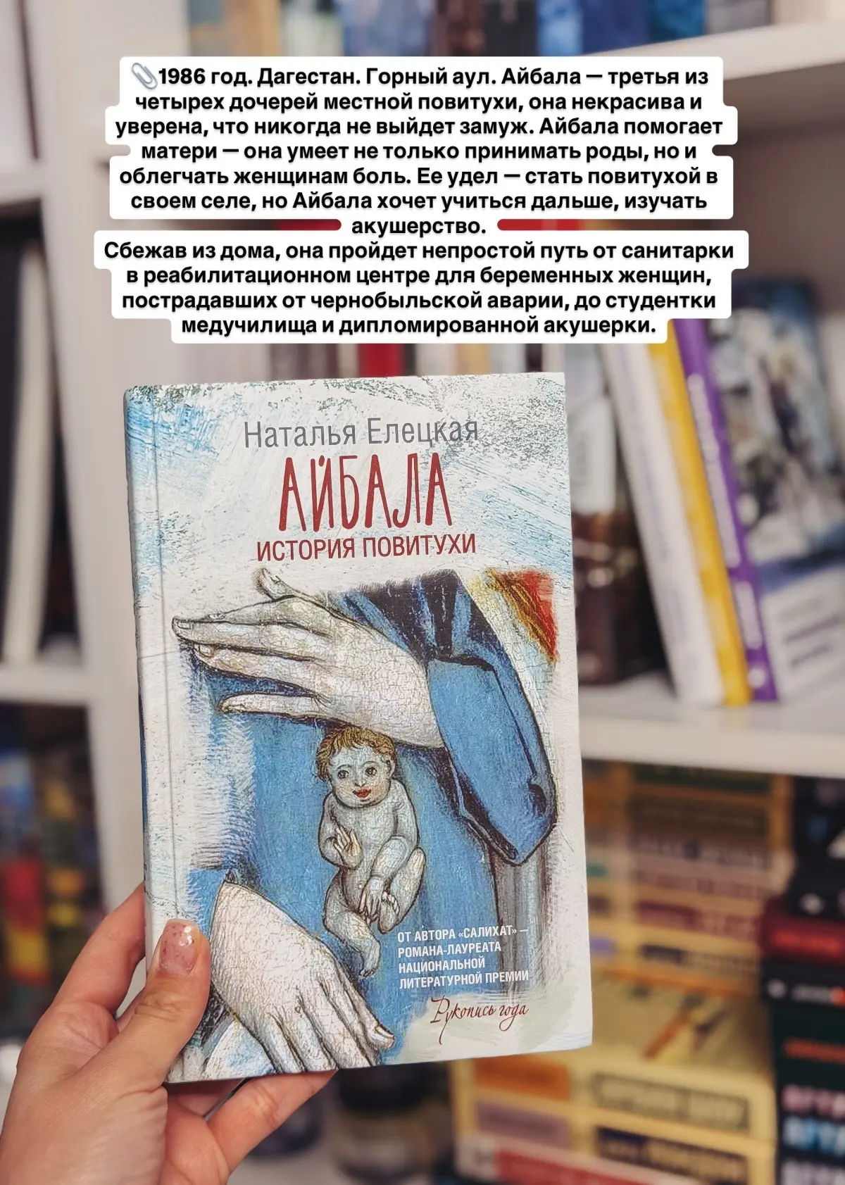 ☑️Айбала, Елецкая: 1986 год. Дагестан. Горный аул. Айбала - третья из четырех дочерей местной повитухи, она некрасива и уверена, что никогда не выйдет замуж. Айбала помогает матери - она умеет не только принимать роды, но и облегчать женщинам боль. Ее удел - стать повитухой в своем селе, но Айбала хочет учиться дальше, изучать акушерство.