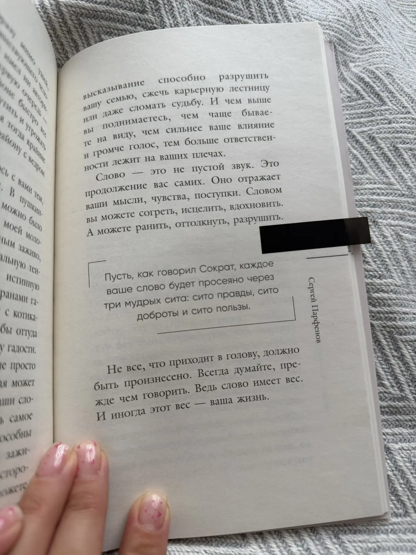 Советую прочесть всем, в книге собрана настоящая житейская мудрость, близкая и понятная, которая может стать настоящим трамплином, поддержкой и тем самым крепким, надежным плечом.