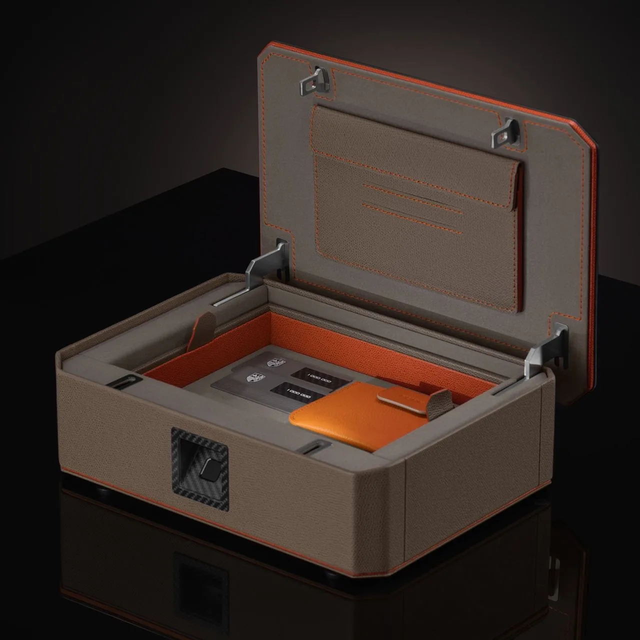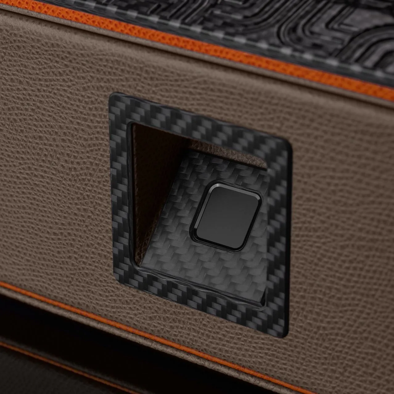 Корпус изготовлен из тончайших нитей карбона, используемых в высококлассных швейцарских часах. Детали волокна вручную переплетаются в единое полотно с эффектом 3D-рисунка.