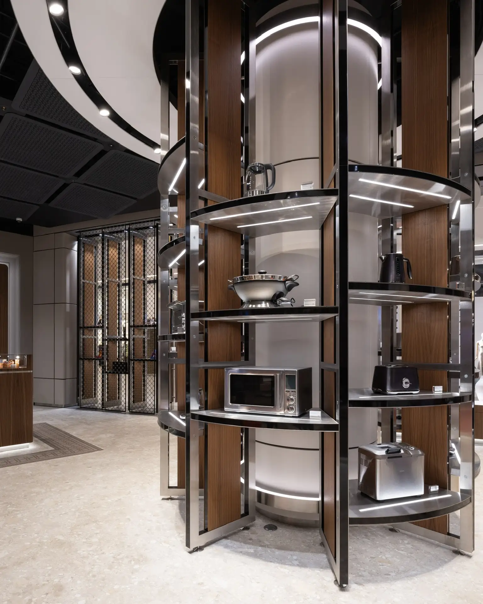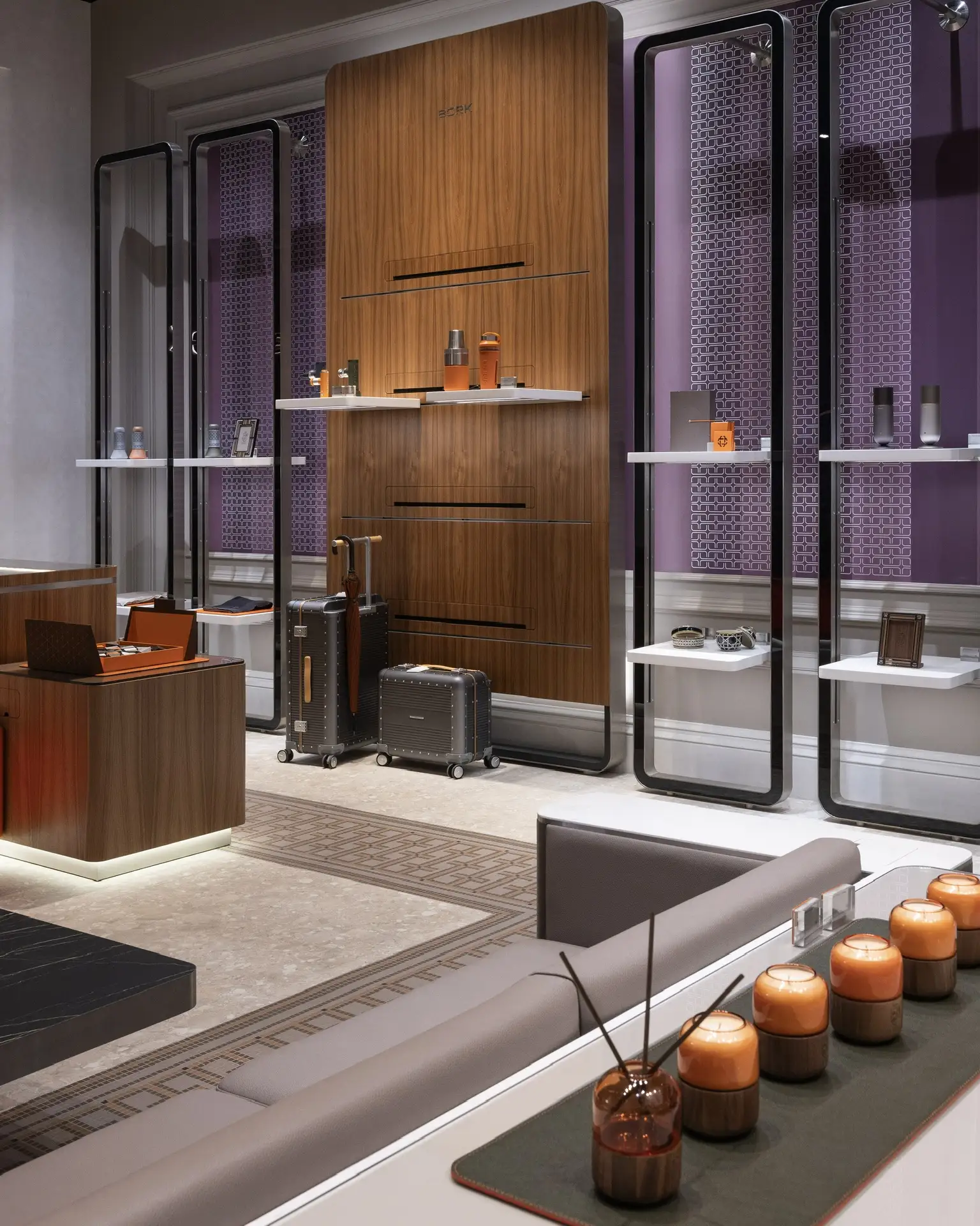 Особую роль играет работа с цветом: стеновые панно с паттерном придают бутику характер и подчеркивают его креативную составляющую.