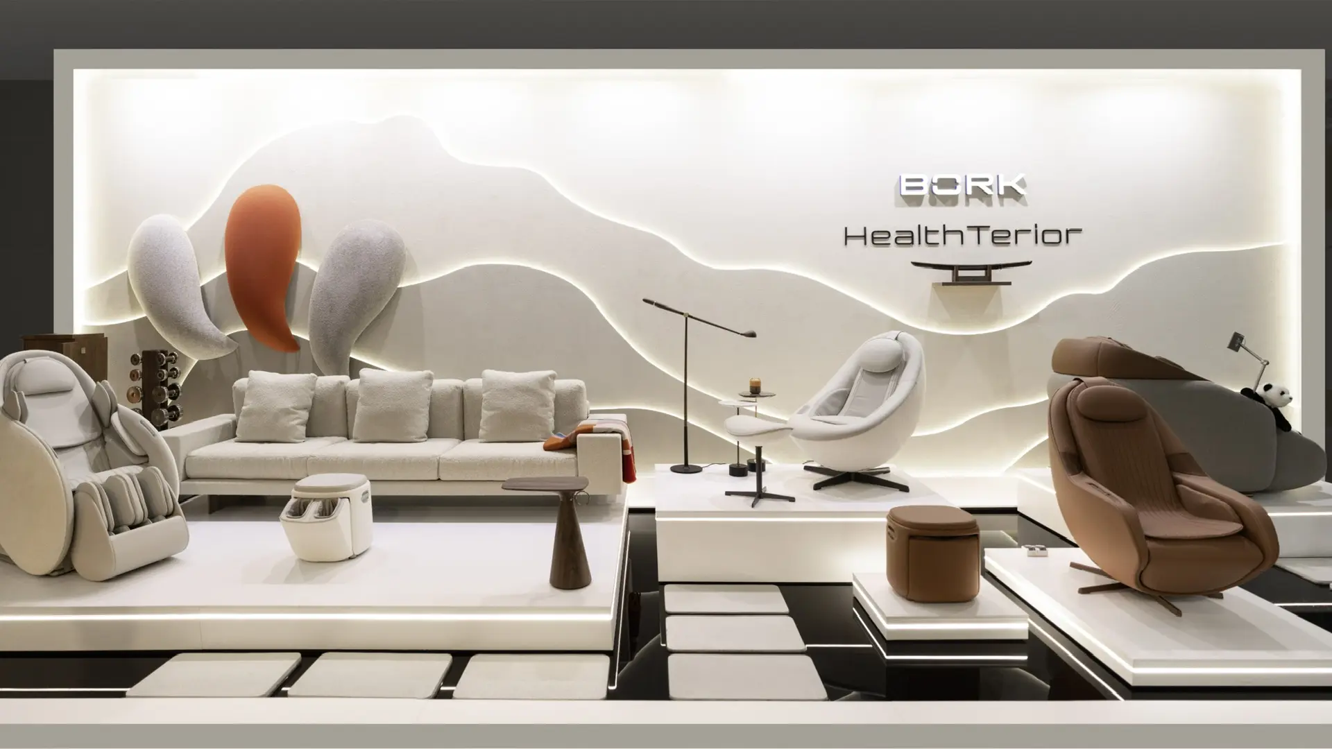 На выставке будет представлена инсталляция, посвященная флагманской коллекции HealthTerior, — это интерьерные массажные кресла, которые заботятся о здоровье и эстетично дополняют пространство.