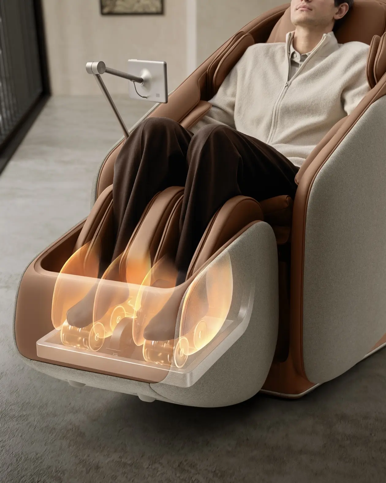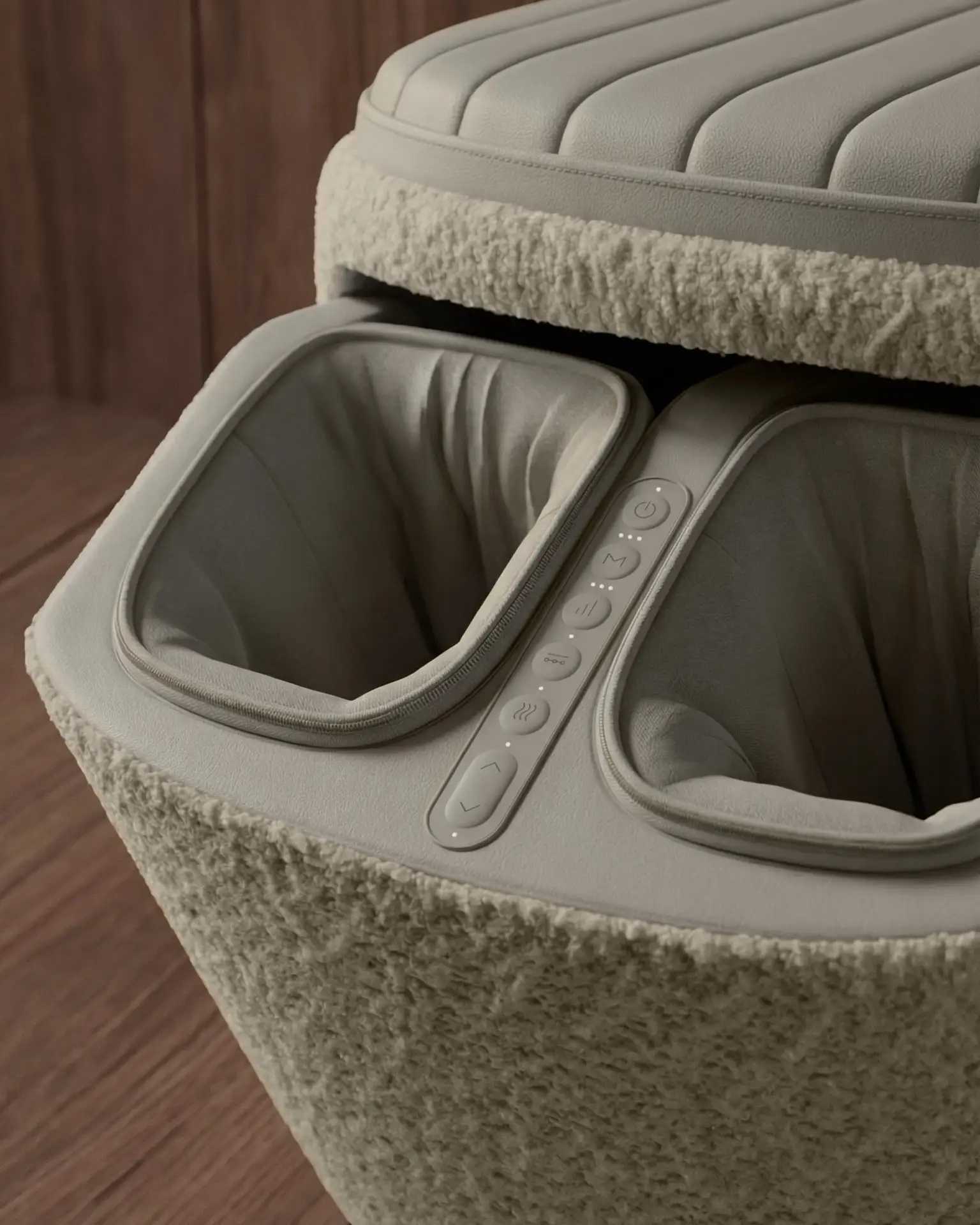 Это персональная wellness-капсула, которая оснащена двумя независимыми блоками — верхним и нижним. Для ног предусмотрен самый продвинутый модуль с функциями компрессии, роликового и вибромассажа.