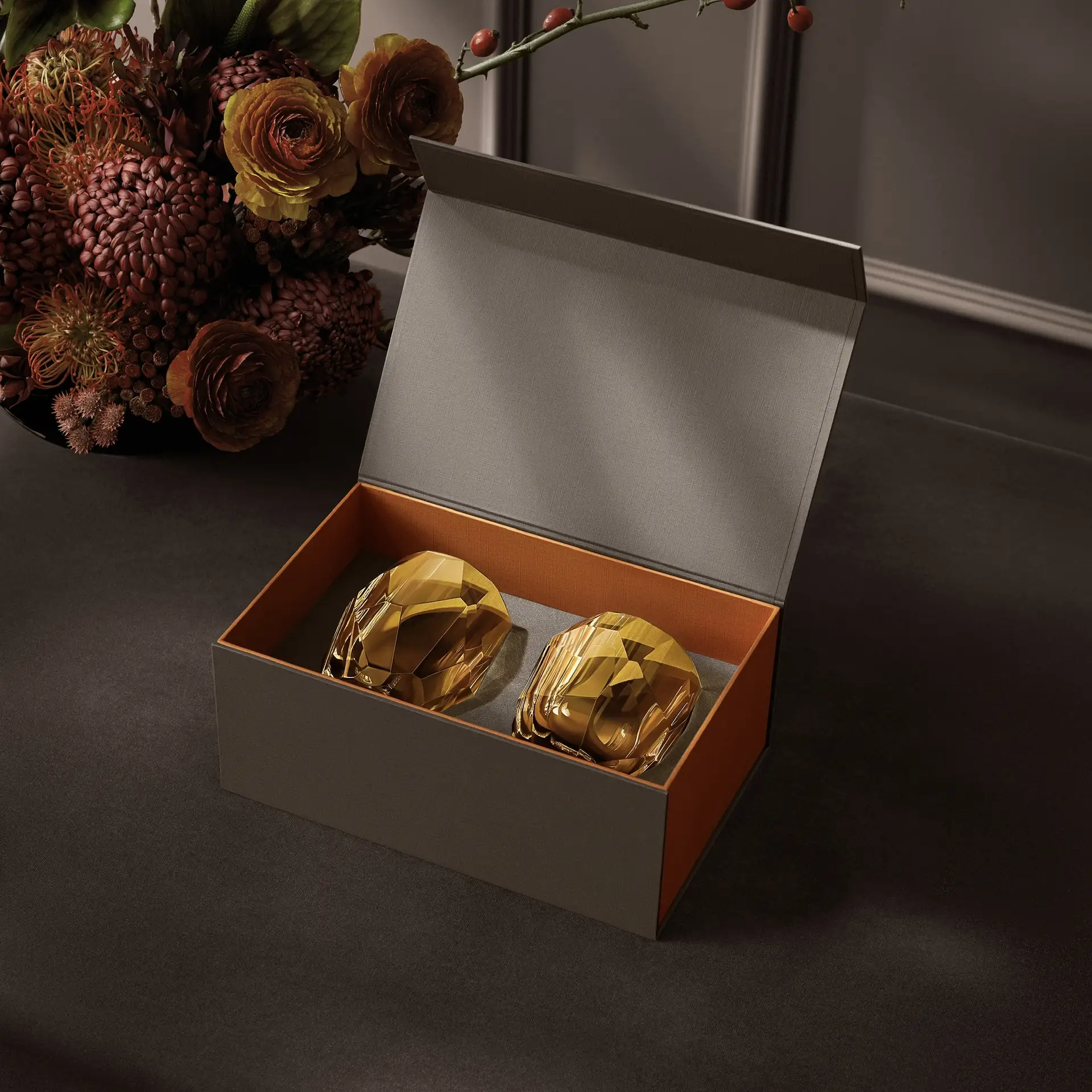 Стаканы BORK вырезаны из цельного массива хрусталя и не содержат ни единого шва, словно природные бриллианты. Форма вдохновлена 55 гранями легендарного камня «Энигма».