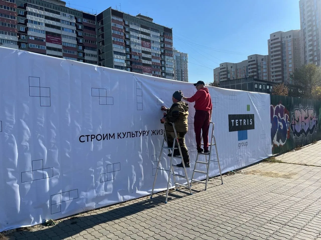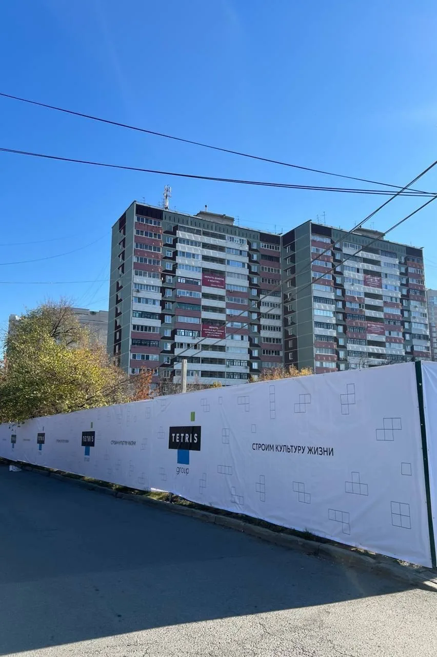 Похоже, около заправки Лукойла, у остановки Южная и Ботанического сада начнётся застройка огороженного участка. На заборе появились баннеры от застройщика Тетрис групп.