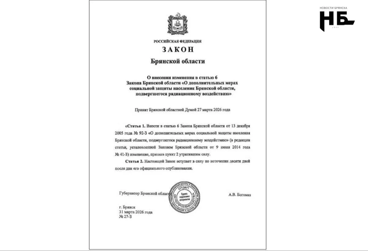 ⚡️В Брянской области скорректировали региональный закон о социальной защите граждан, пострадавших от радиационного воздействия