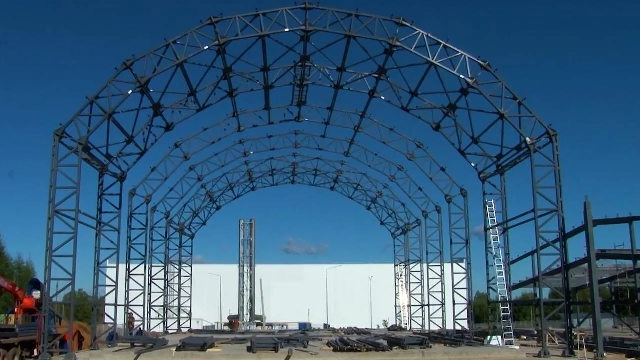 На каркас ФОКа в Кезу строители уже натягивают тент. К середине сентября должны завершить, затем – утепление, вентиляция, перегородки.