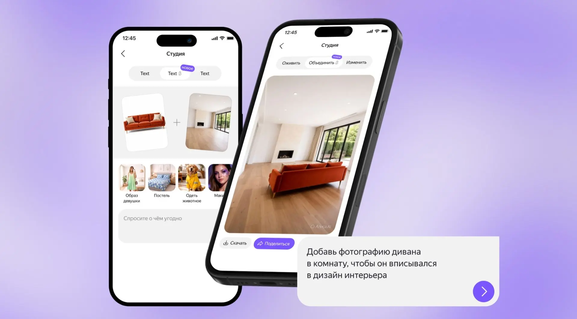 Алиса AI теперь умеет объединять фотографии. Нужно просто загрузить два изображения и описать то, что вы хотите получить в итоге.