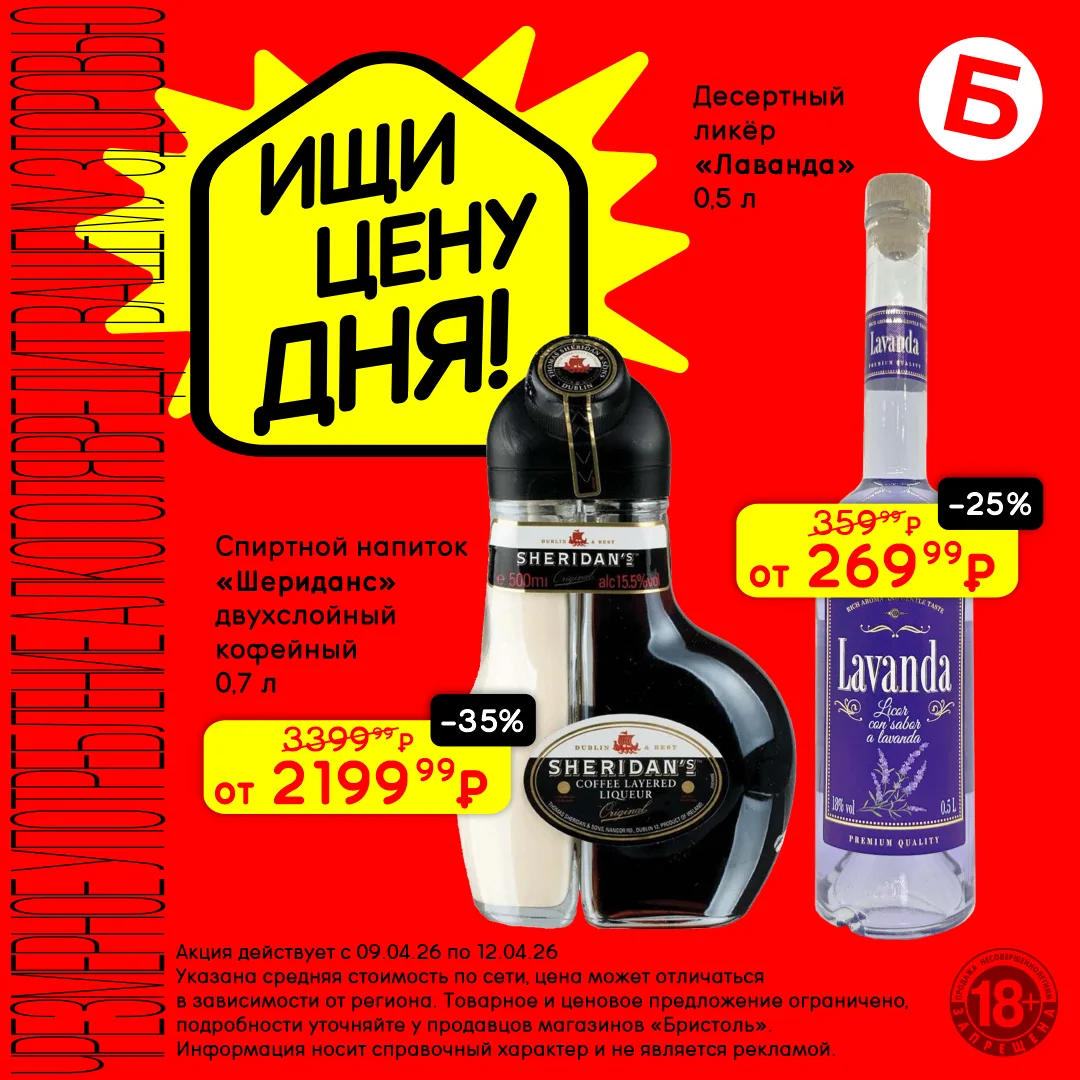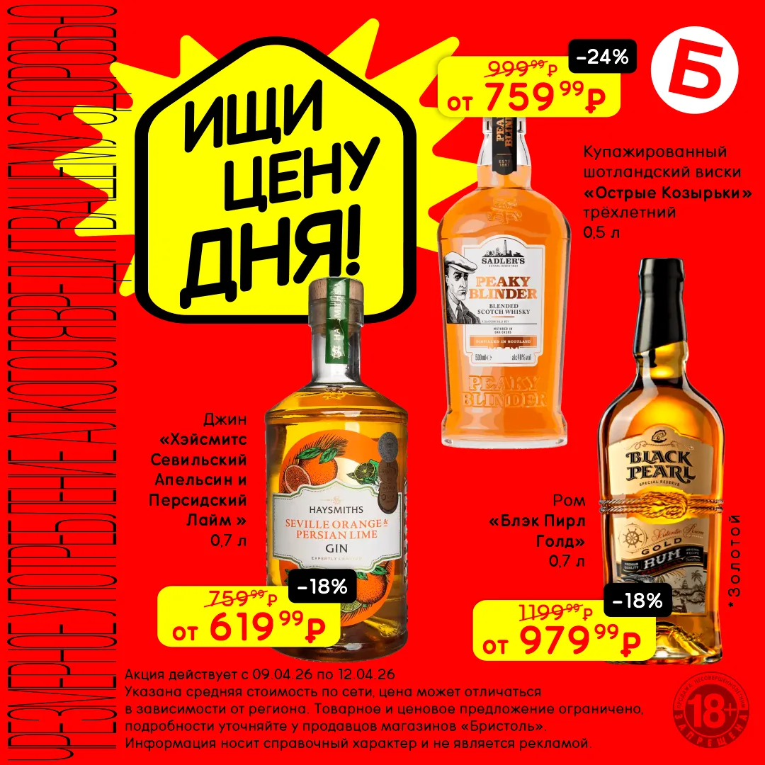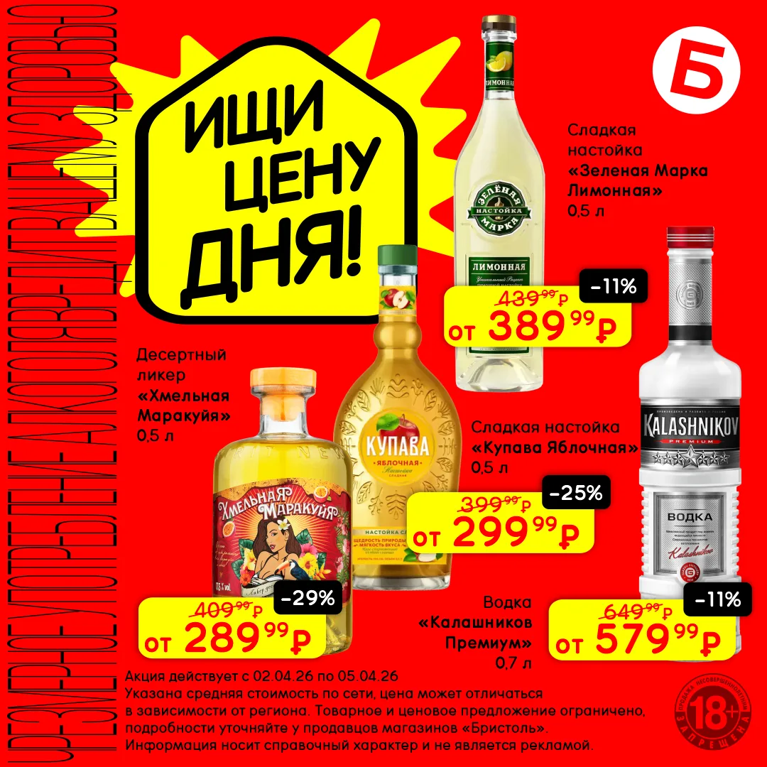 С 9 по 12 апреля открывай «Цену дня» и выбирай крепкие напитки по сниженным ценам. Каждый со своим вкусом, каждый со скидкой 😏
