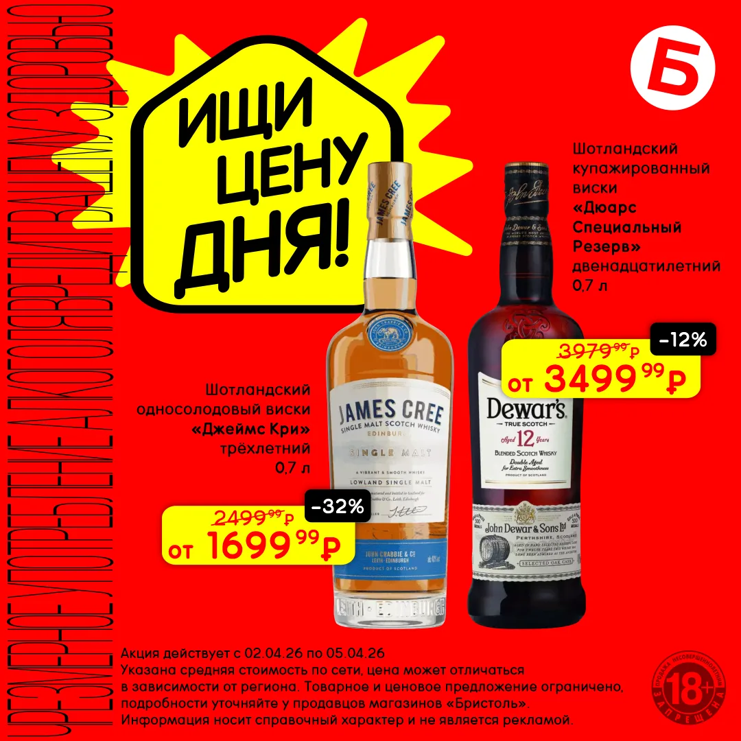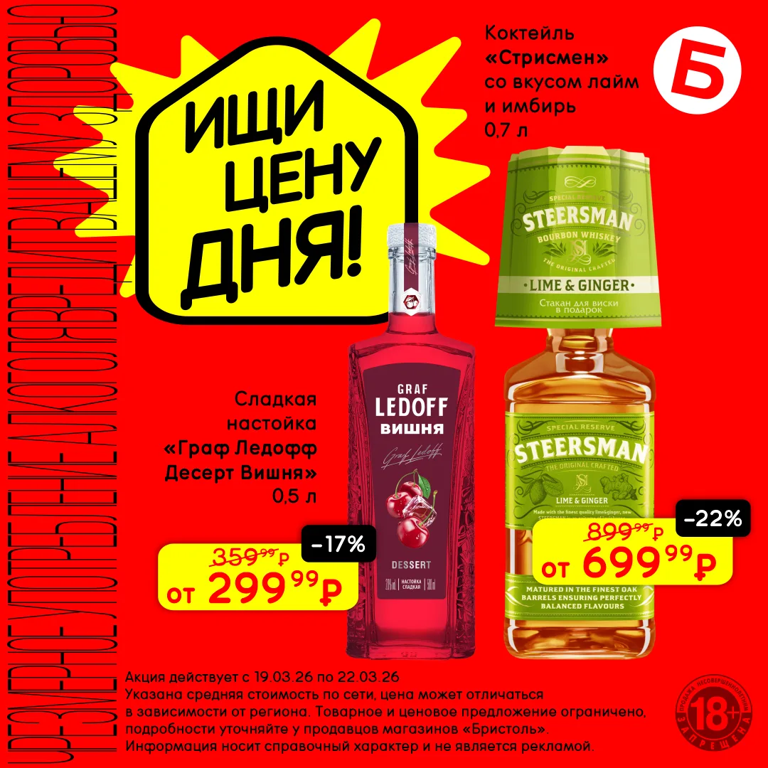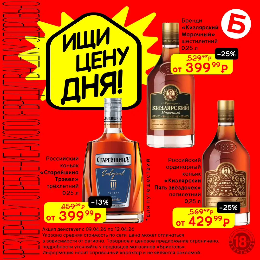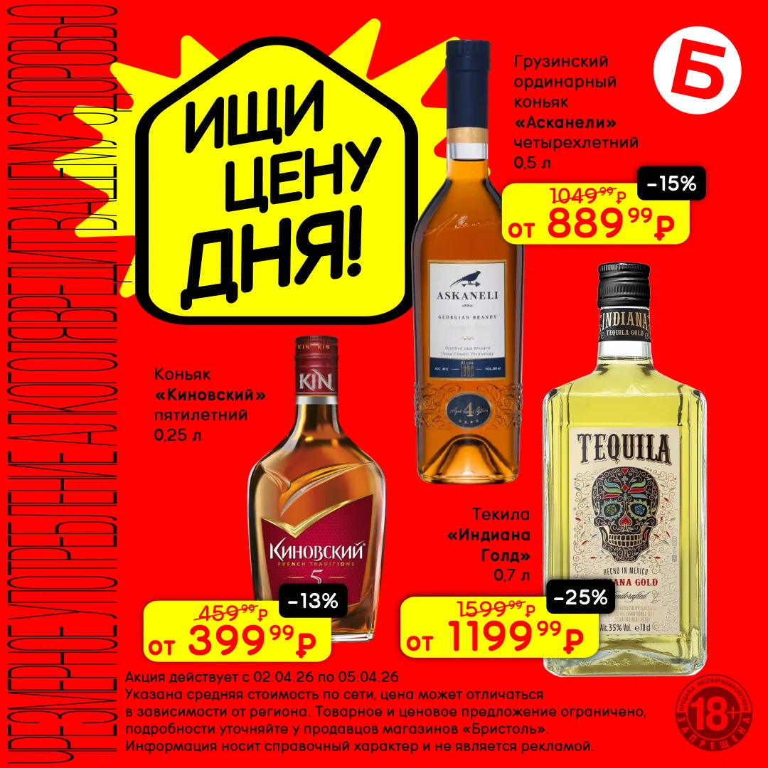 С 9 по 12 апреля открывай «Цену дня» и выбирай крепкие напитки по сниженным ценам. Каждый со своим вкусом, каждый со скидкой 😏