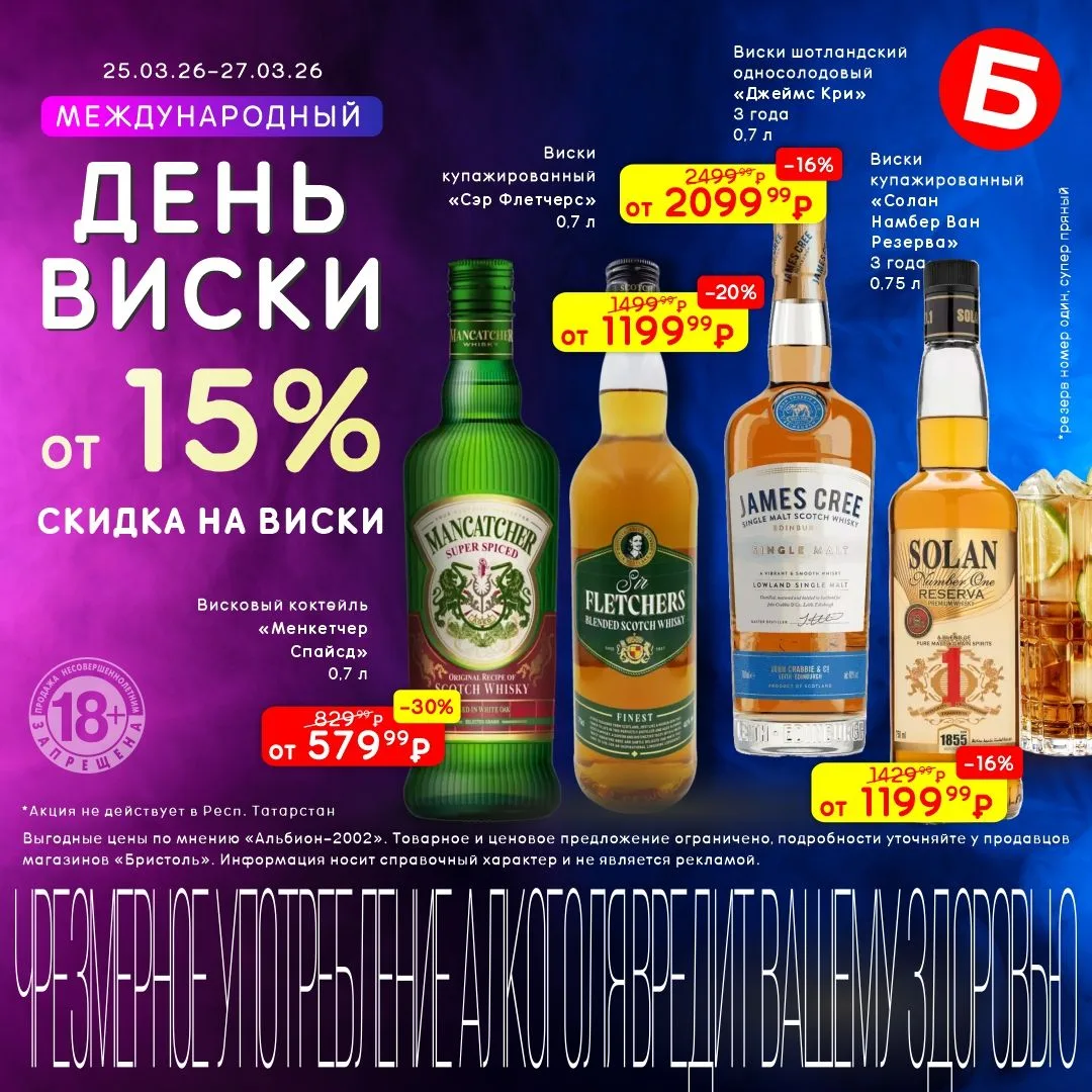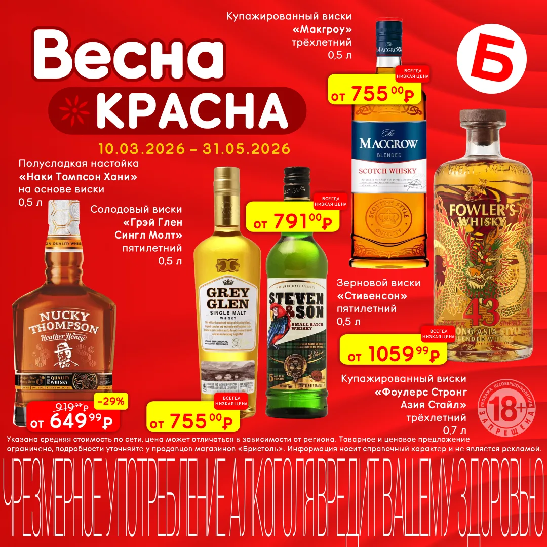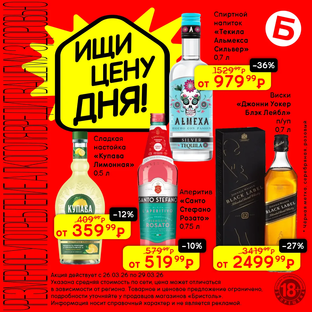 Что общего у игристого, виски, текилы или пива? «Цена дня»! с 26 по 29 марта скидки от 27% до 46%