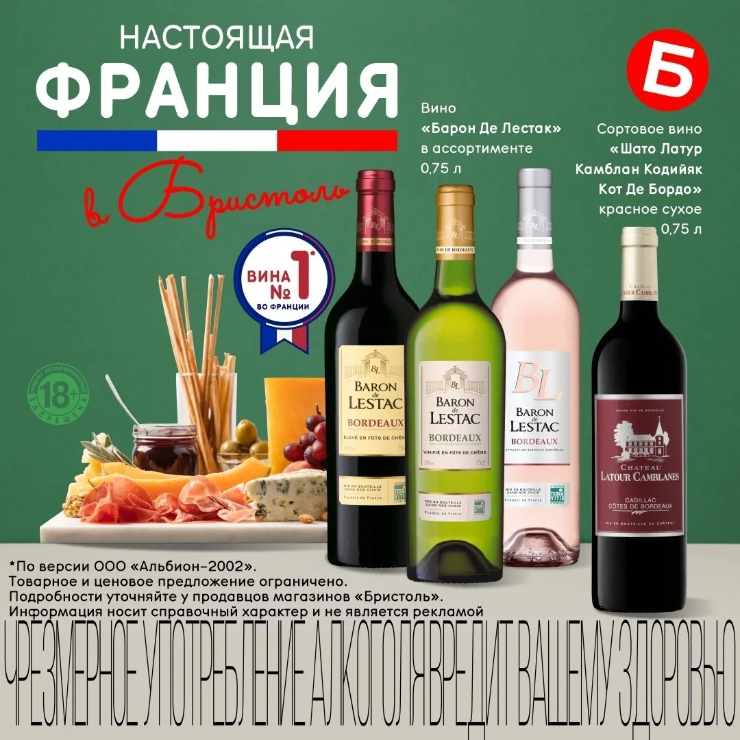 🍇Эксклюзивно в Бристоль вина БАРОН ДЕ ЛЕСТАК из сердца Франции. Каждое со своей уникальной палитрой вкусов Красное с нотами ежевики, вишни и древесными оттенками