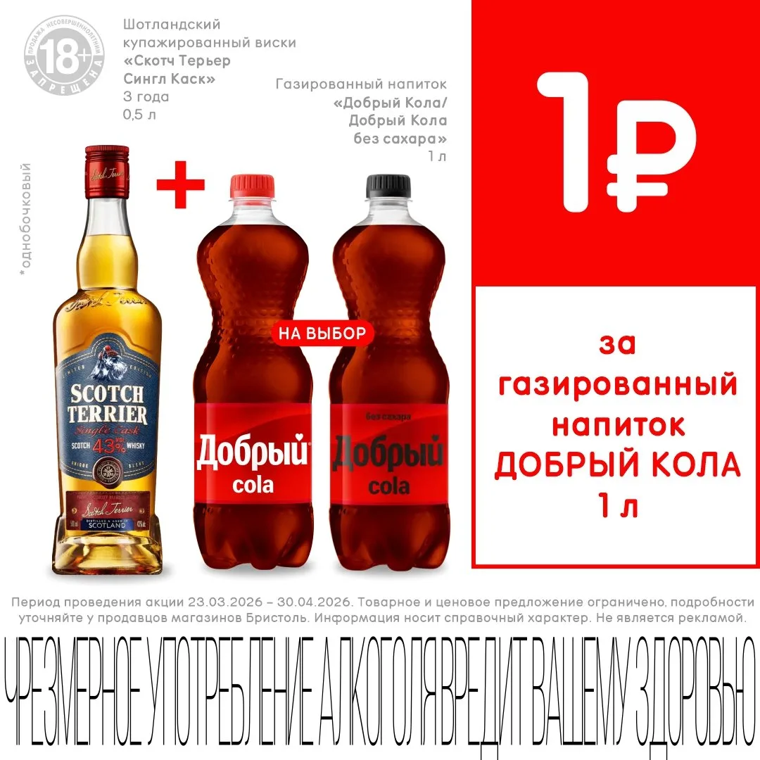 при покупке виски Скотч Терьер 3 года 0,5л 🥃 забирай Добрый Кола 1л за 1₽🥤