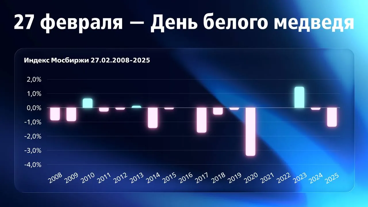 Этот месяц исторически не имеет чётко направленного тренда, как у декабря или января. Это отражает и средняя динамика индекса Мосбиржи полной доходности февральского рынка — +0,6%.