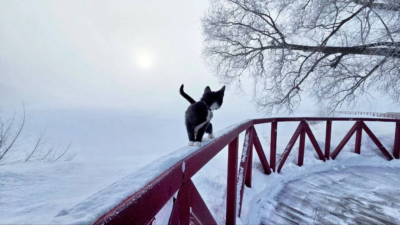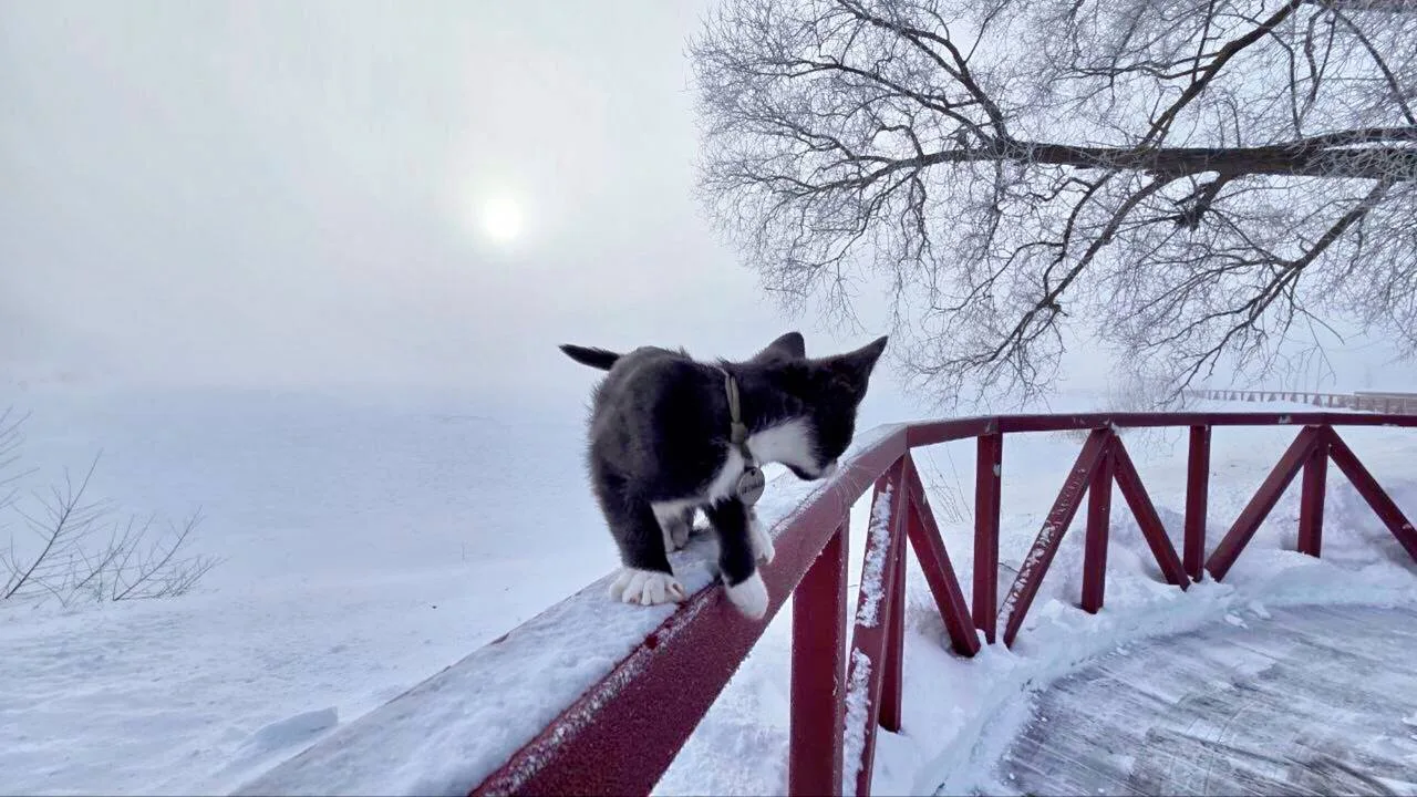 Она сидит на одном месте и там же спит, зарываясь в снег. Люди подкармливают её и постелили сено, чтобы не замёрзла.