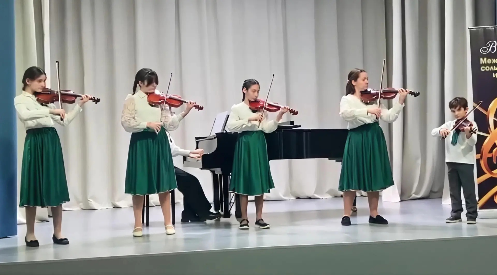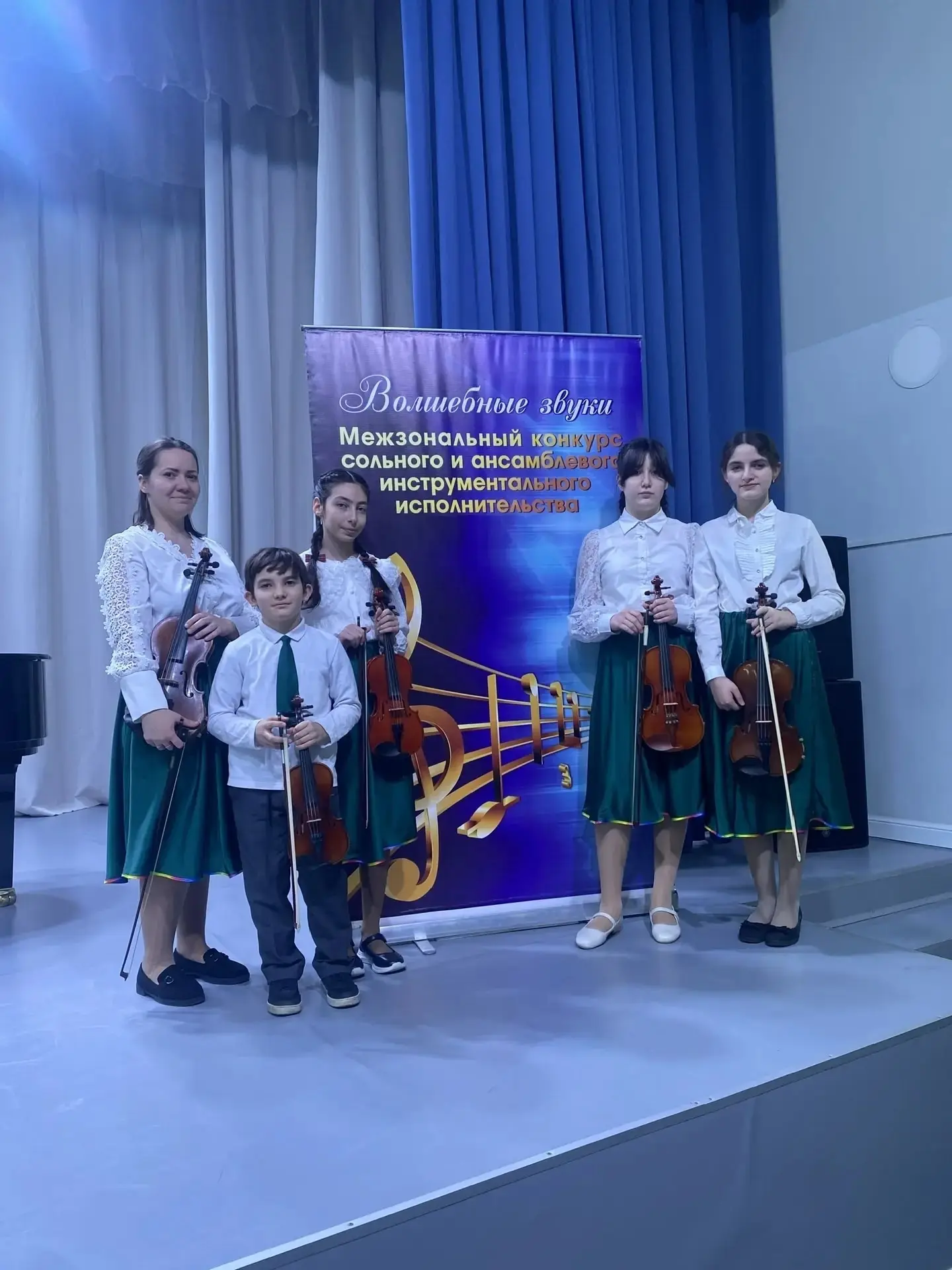 15 февраля скрипичный ансамбль "Фиеста" Бронницкой ДШИ (преподаватель Антонова Екатерина Сергеевна, концертмейстер Глазунова Мария Серафимовна) успешно выступили на Межзональном конкурсе сольного и ансамблевого исполнительства "Волшебные звуки" г.о. Воскресенск