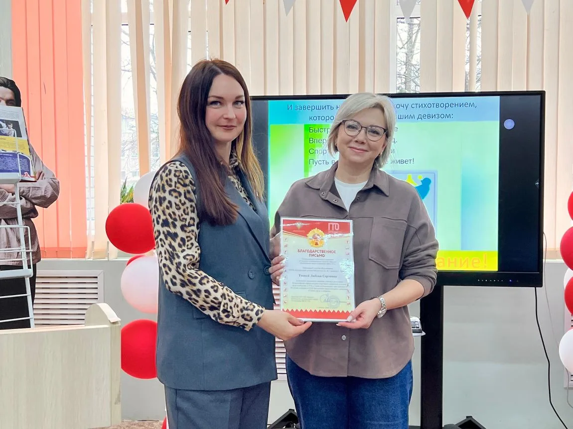 ✅В завершение встречи Наталья Куликова в торжественной обстановке вручила Благодарственные письма за популяризацию ВФСК ГТО и в честь 95-летия комплекса ВФСК ГТО коллективу библиотеки и руководству школы.