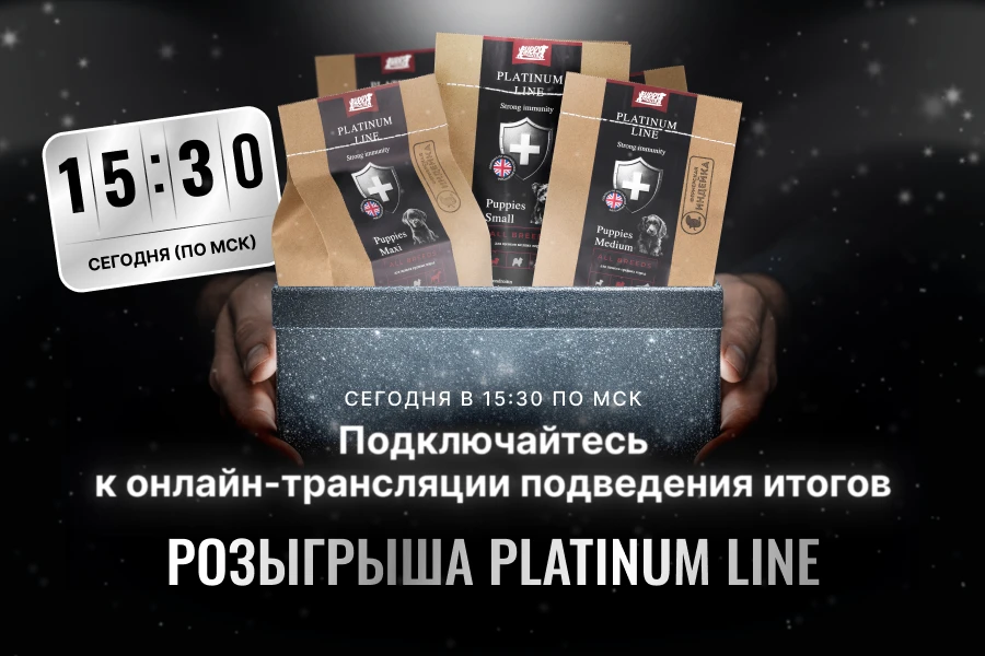 Подводим итоги грандиозного розыгрыша 2025 года в честь линейки PLATINUM LINE. Определим 60 счастливчиков! А главный приз — годовой запас вкусного корма для вашего питомца!