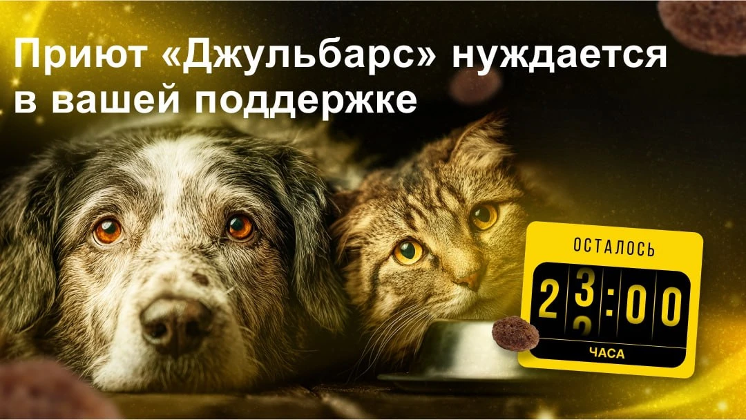 Через 23 часов заканчивается «корзина помощи» для приюта "Джульбарс". Сегодня «Джульбарс» — это больше чем приют. Это место, где возвращают к жизни не только животных, но и веру в человечность. Под нашей крышей нашли заботу более 205 питомцев, из них 42 — особенные пациенты со сложными диагнозами.