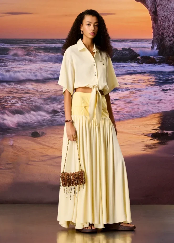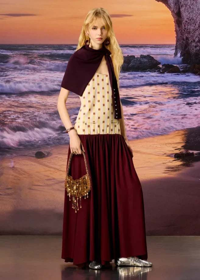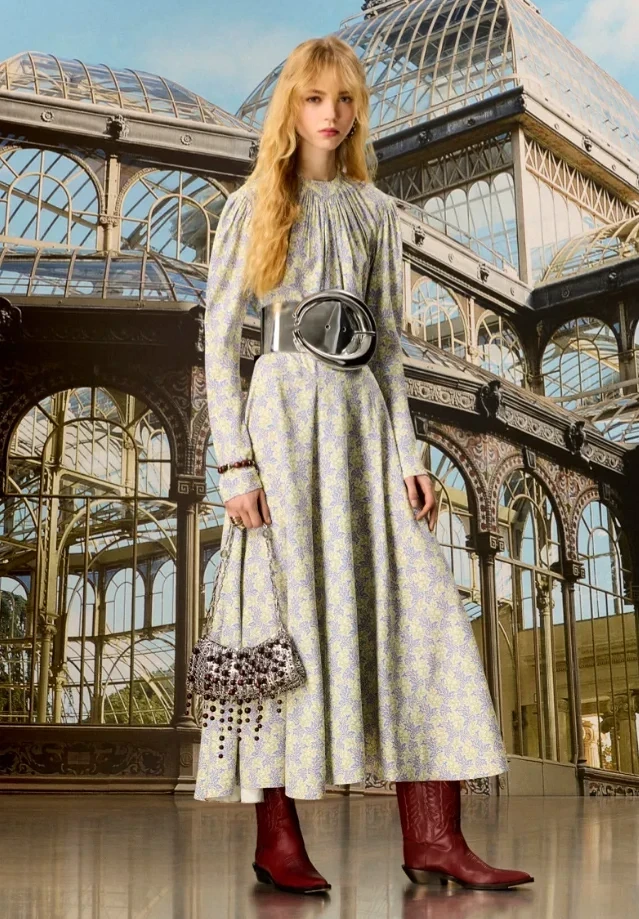 Холодный сезон 2025 еще идет полным ходом, а у нас уже есть возможность заглянуть в следующую осень — по крайней мере, в ее версию Rabanne. Модный дом презентовал осеннюю пре-коллекцию 2026. Креативный директор бренда Жюльен Доссена выбрал неожиданное направление — фолк и ремесленные мотивы. Необычной эта тема предстает в контексте фирменной эстетики Rabanne, ведь она традиционно ассоциируется с футуризмом, космическими образами и сиянием металла. Однако Доссена сумел соединить далекие друг от друга влияния и создать гармоничную версию эклектики.