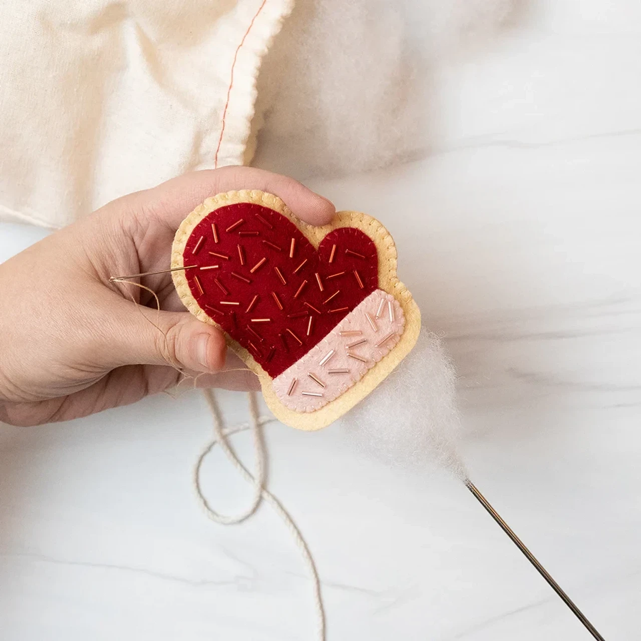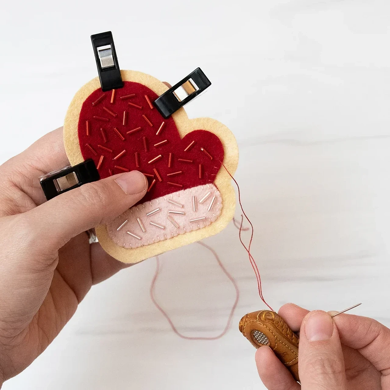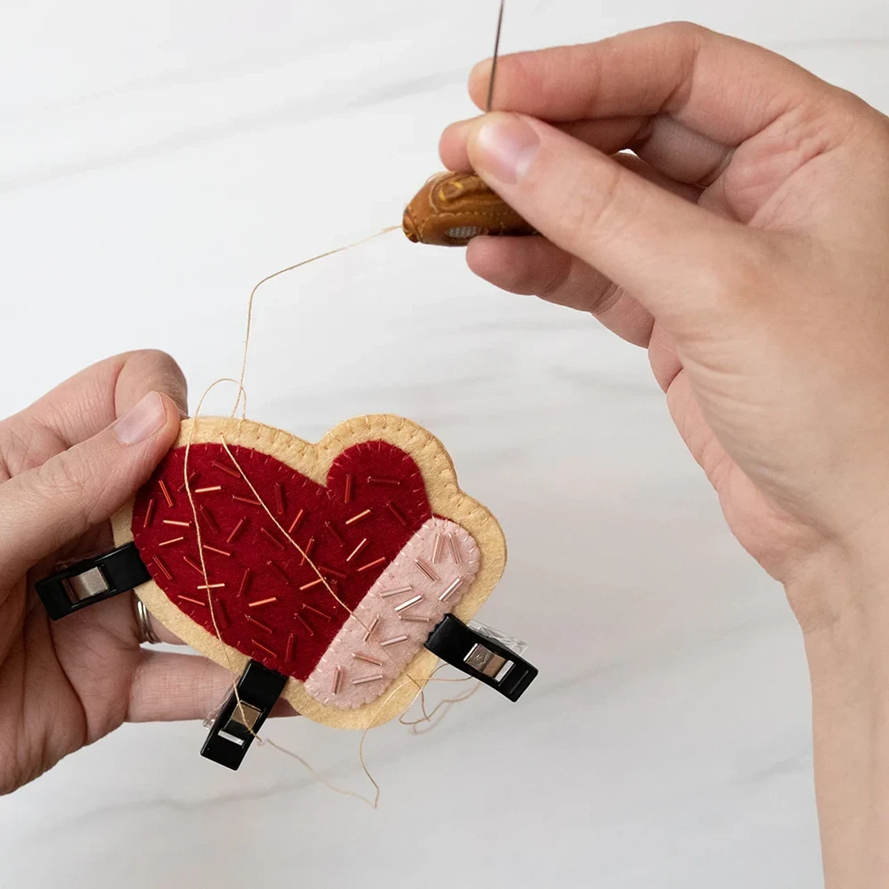 💙 Склейте детали «спинками» и добавьте петельку. Готово!